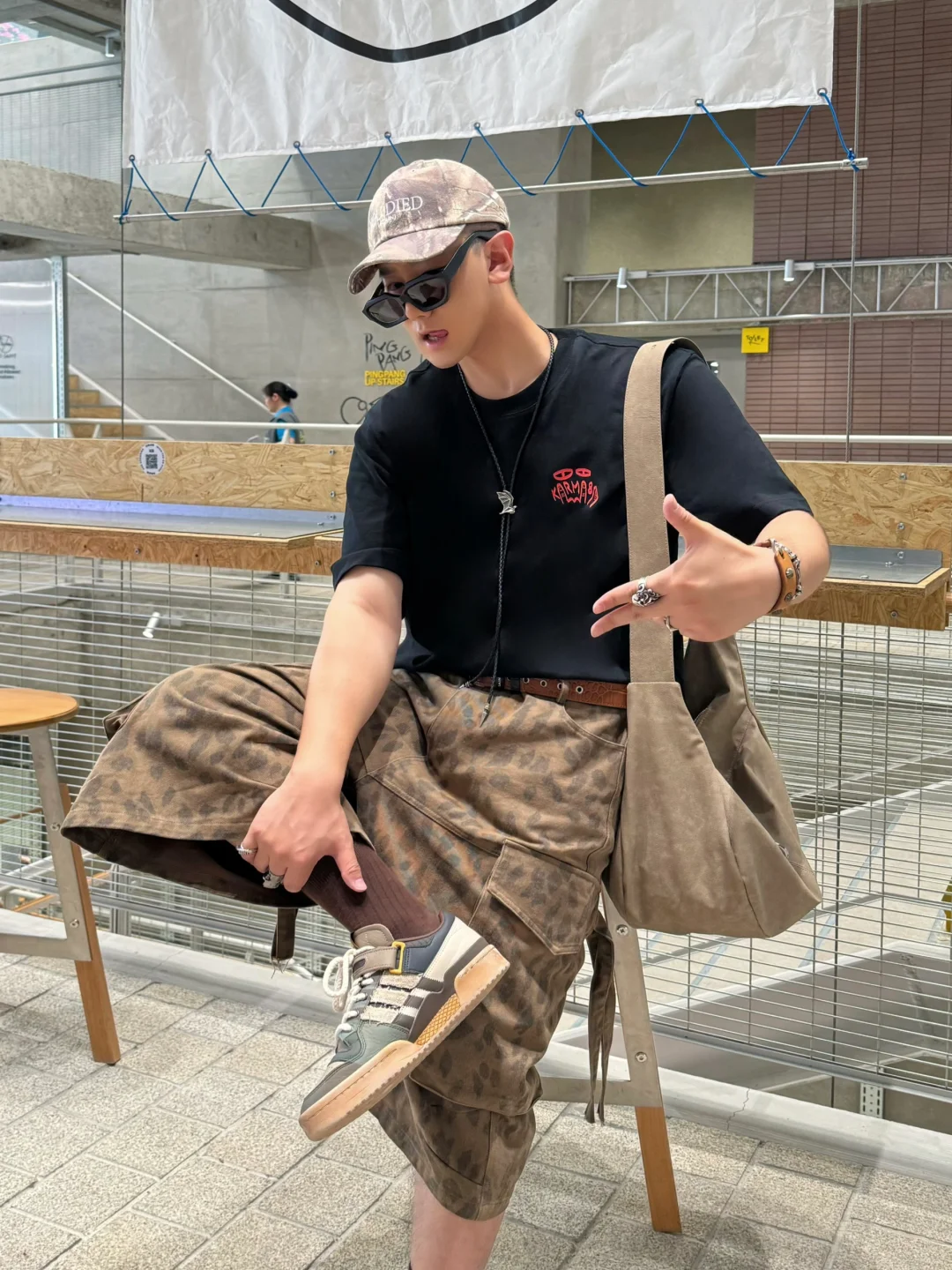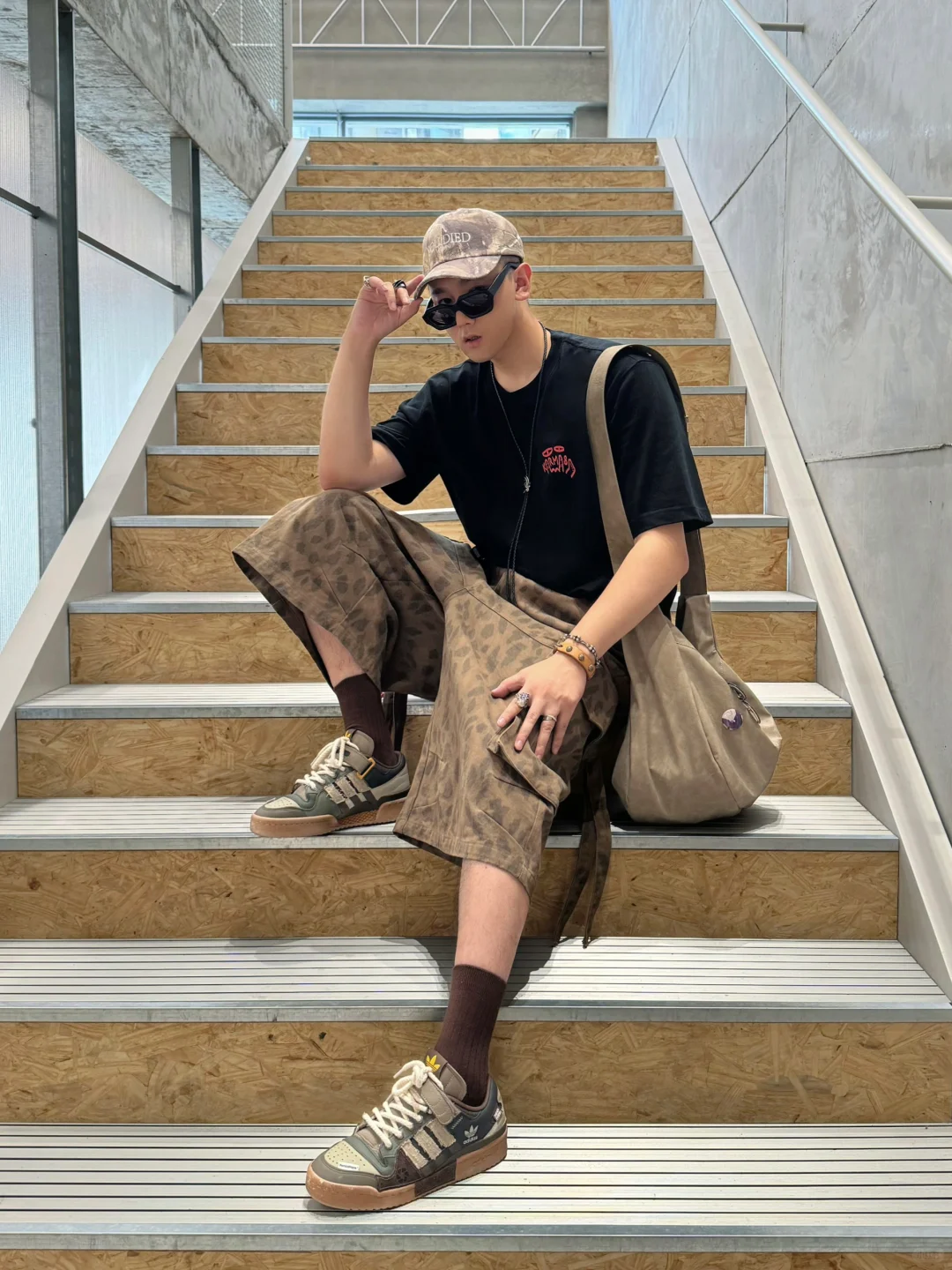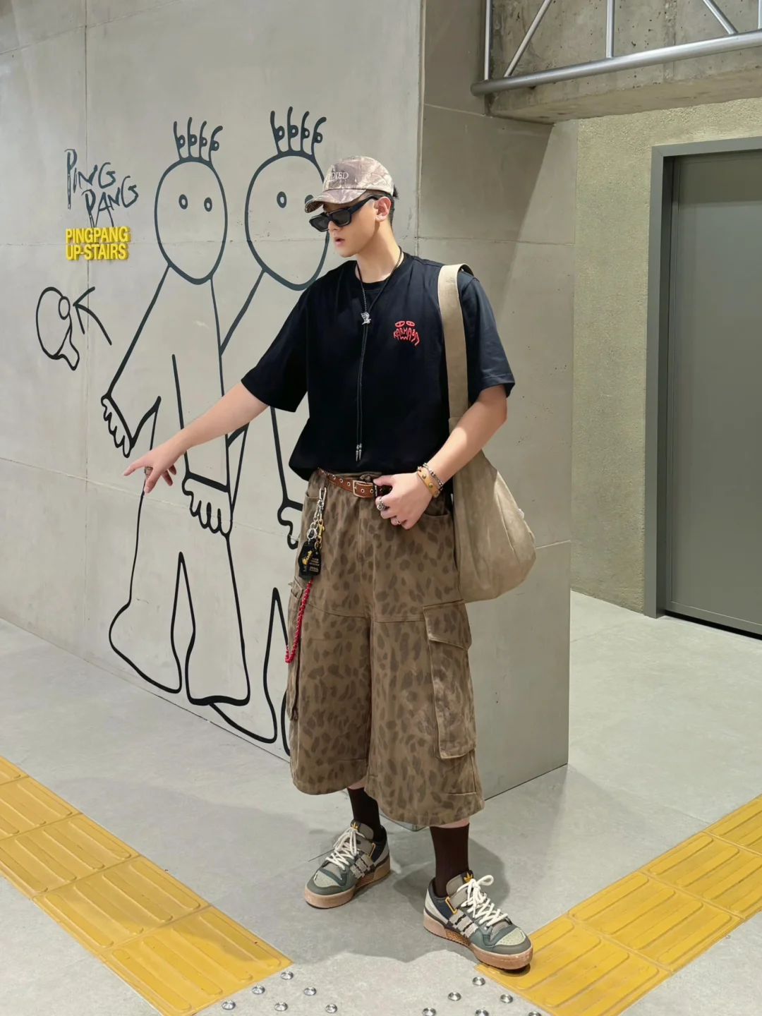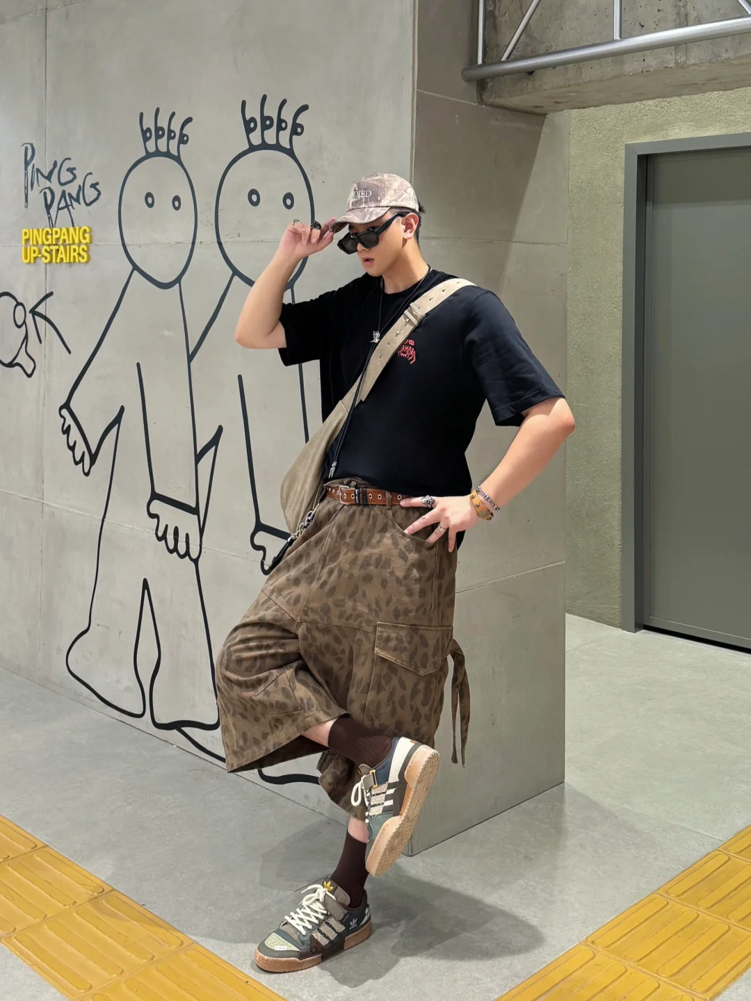 夏天不sao等啥呢🐆豹纹穿起炸街❕ 一件黑红涂鸦Tee➕豹纹八分裤叠搭, 主打攀岩文化的Merch也能自带街头感🛹~ 上素下花🔴视觉重心下移修饰身型比例👀, 踩一双迪子厚底板鞋🐻熊猫呼应动物元素~ Rs棒球帽贼适合大头宝宝🍂近期新欢🍂, 尤其这句标语U Died Again懂得自然懂🏹~ 背包腰带同豹纹呼应🌈色彩拿捏一下, 夏日豹纹顶男出街🐆细品都是细节U Dig💯~ - -