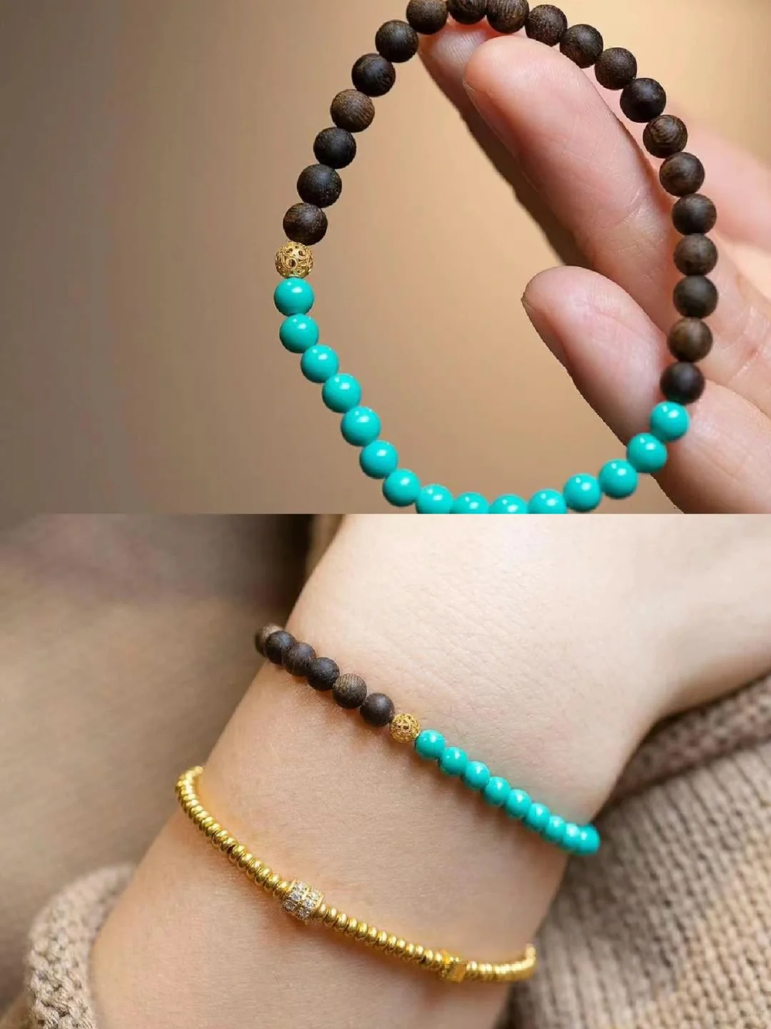 绝对是夏天的颜色4mm小精品沉香手串 绿松石·18k金搭配,很阳光百搭