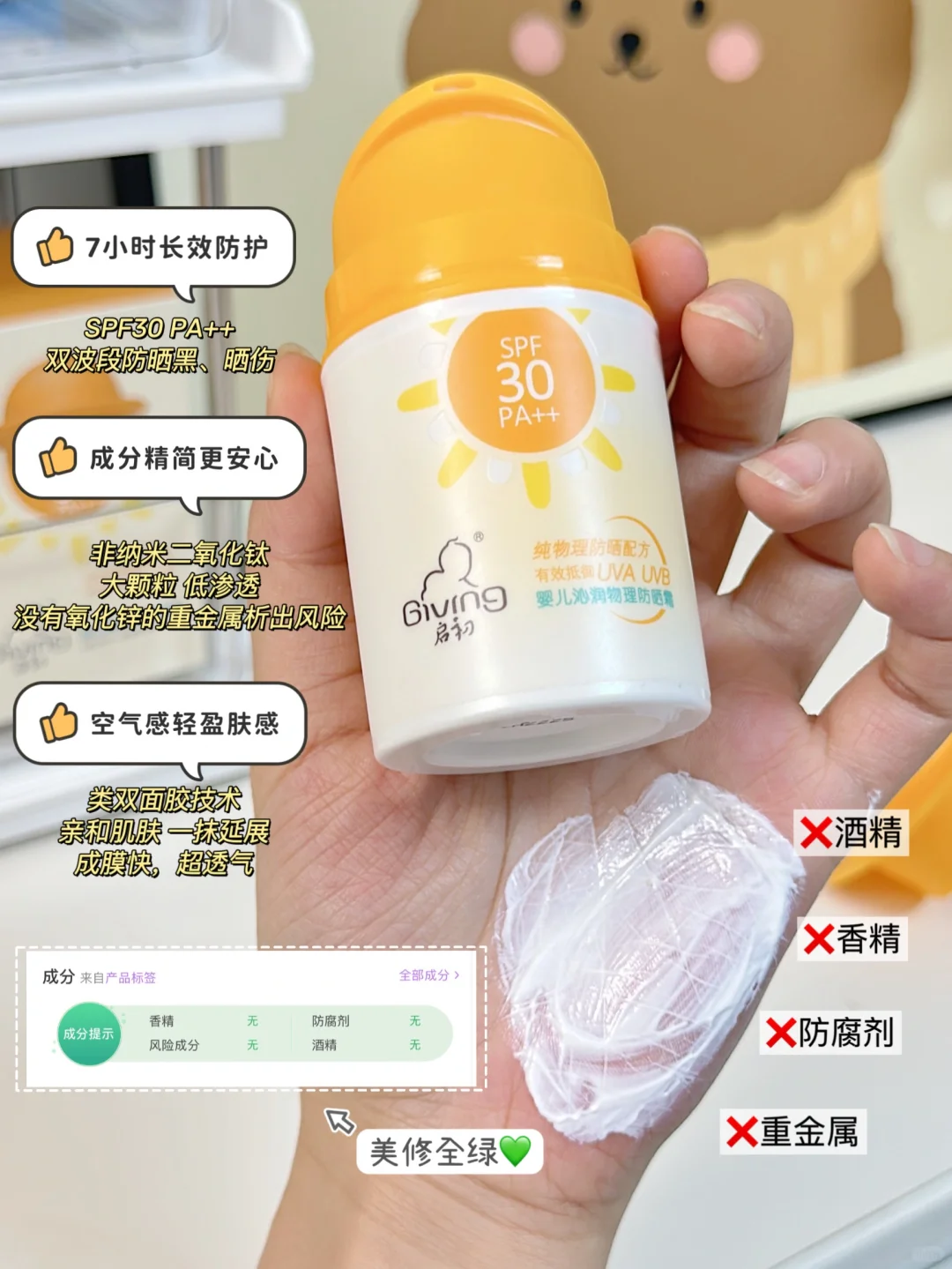 启初防晒霜防晒霜推荐儿童防晒物理防晒#户外防晒