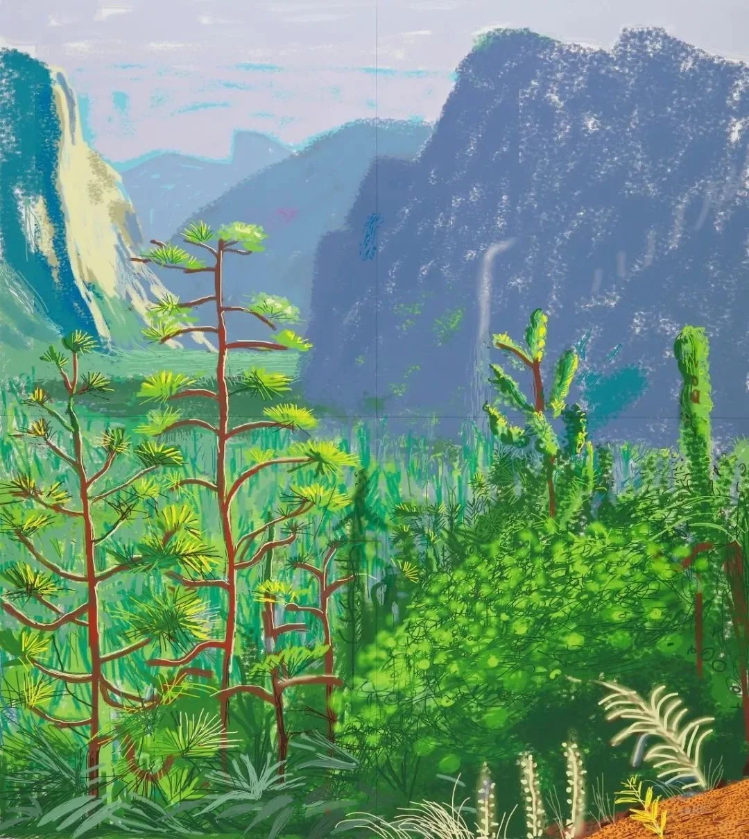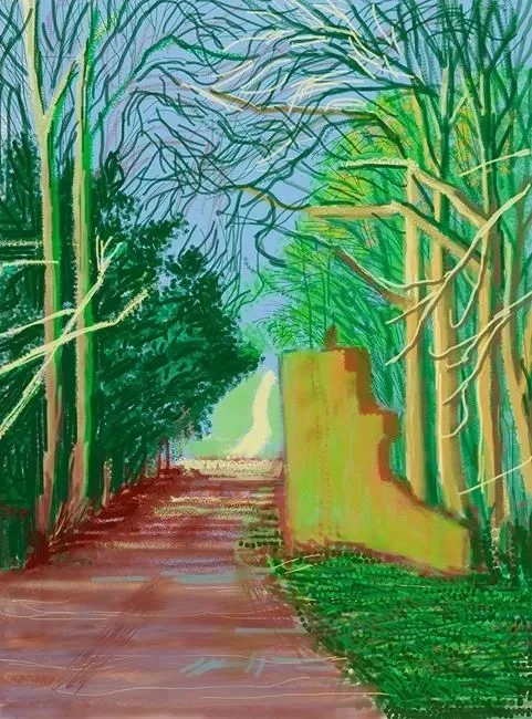 🍀六十年代大卫的作品中,人物总是用非常冷淡的颜色描绘,好像可以感受到人物伸出的空白和孤独。到了90年代,他开始创作以树林、房屋、小径作为主题的风景画。运用大片鲜艳而不常见的色彩,比如粉红、橙色、大红等,来描绘出大自然的变化规律。霍克尼的艺术是对鲜活生命的颂扬。他的所有作品,在描绘亲朋好友和家人时,是温柔的:描绘慵懒惬意的泳池时光时,是顽皮的:描绘美国大峡谷的宏伟景象时,是令人惊叹的。