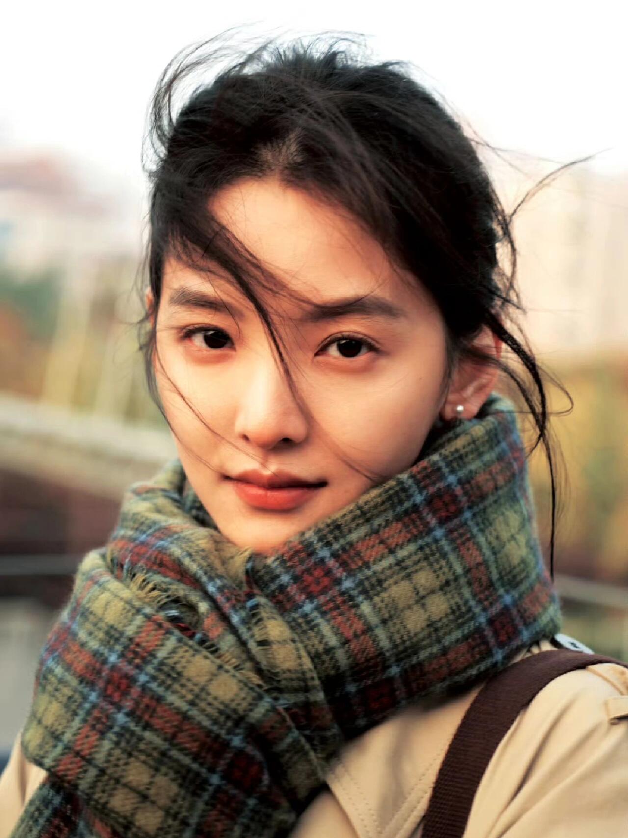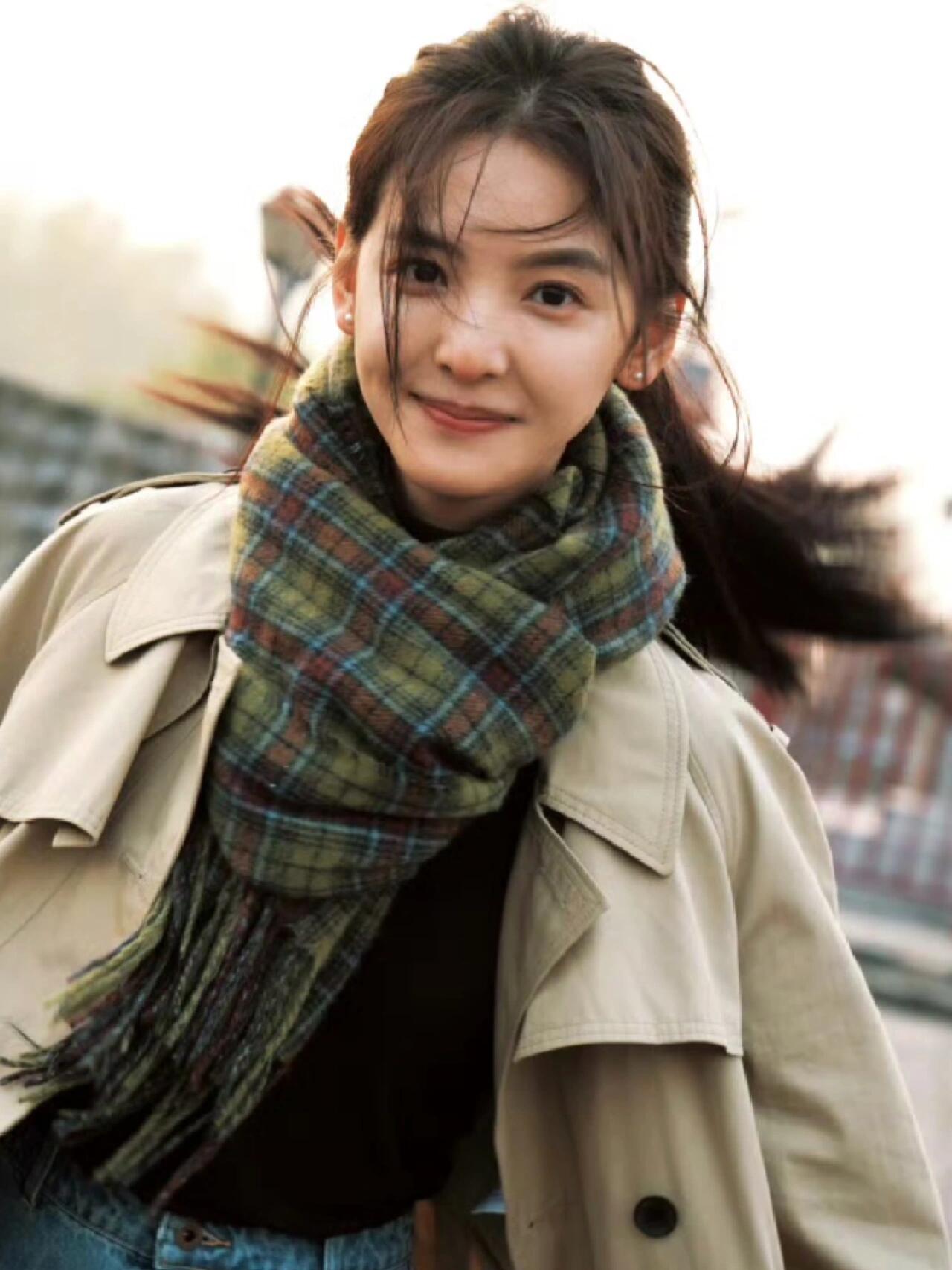厚围巾配低马尾 简单又自然,秋冬温柔女孩的日常。