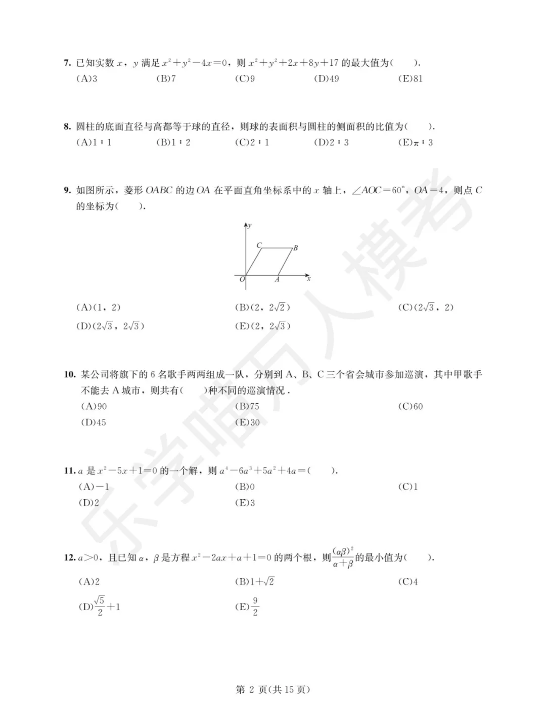 7月7号进行的乐学喵暑期全国模考试卷,大家可以做一做试一下,看看自己目前知识掌握哪里有问题,有问题的可以7月10号来直播间问我。