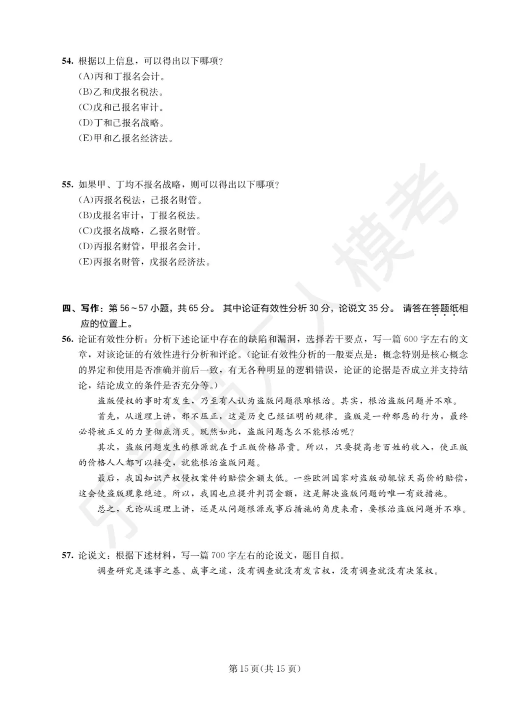 2025年全国硕士研究生招生考试管理类联考