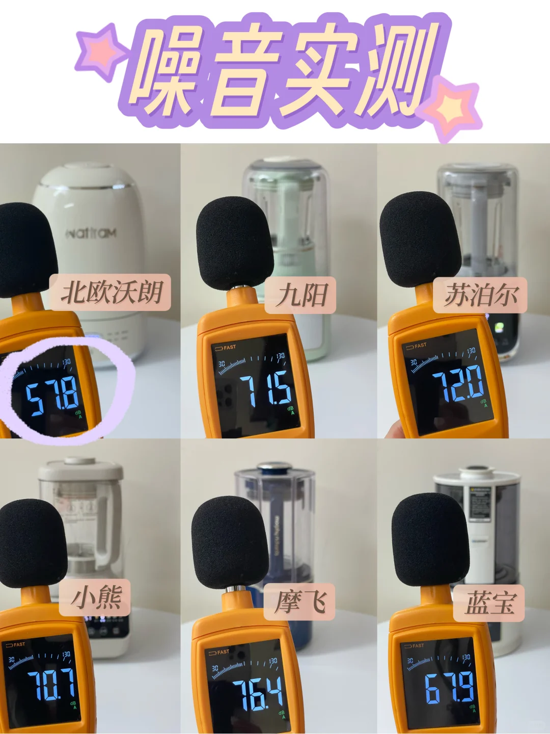 👉实测的噪音分贝是最能直观体现破壁机时候否够静音的