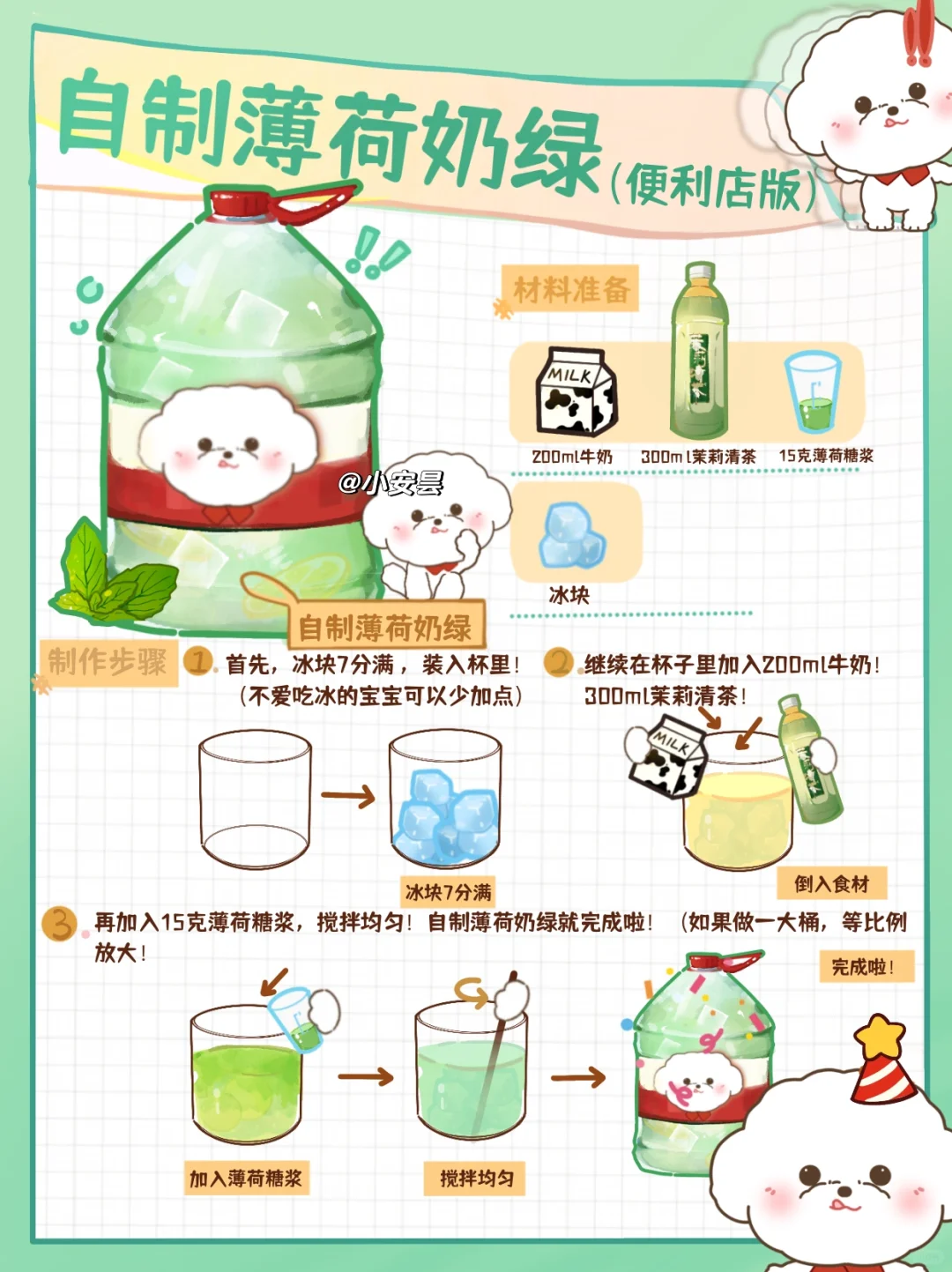 2⃣️分钟自制一桶薄荷奶绿🧊嘴巴像开了空调