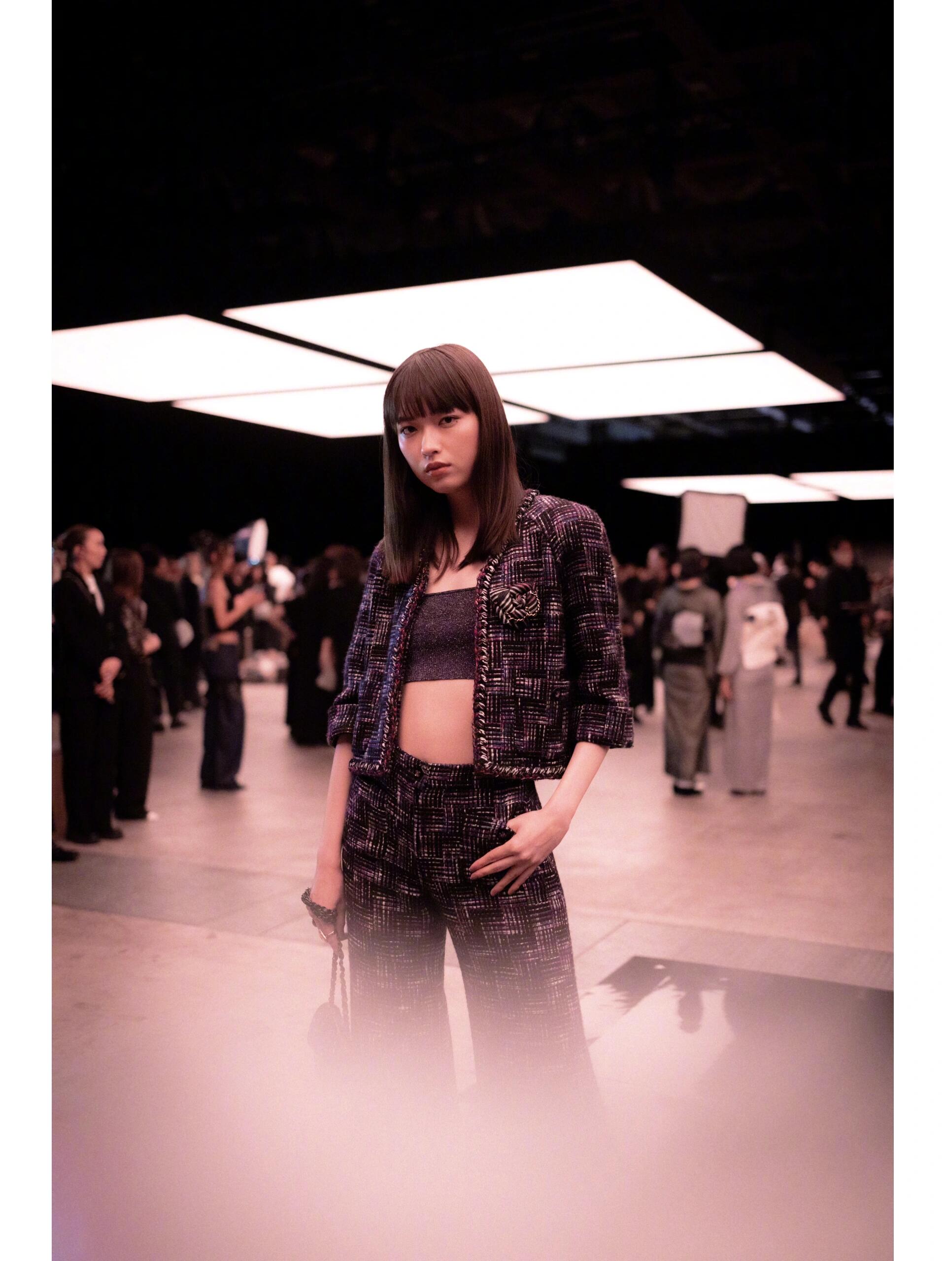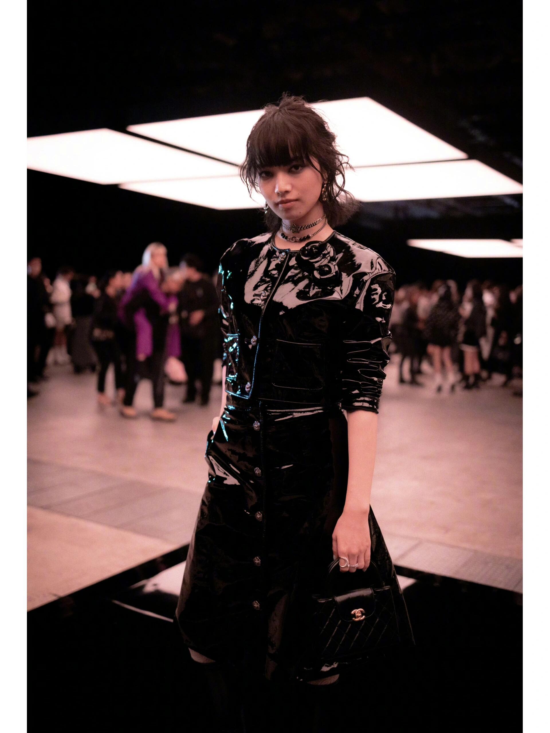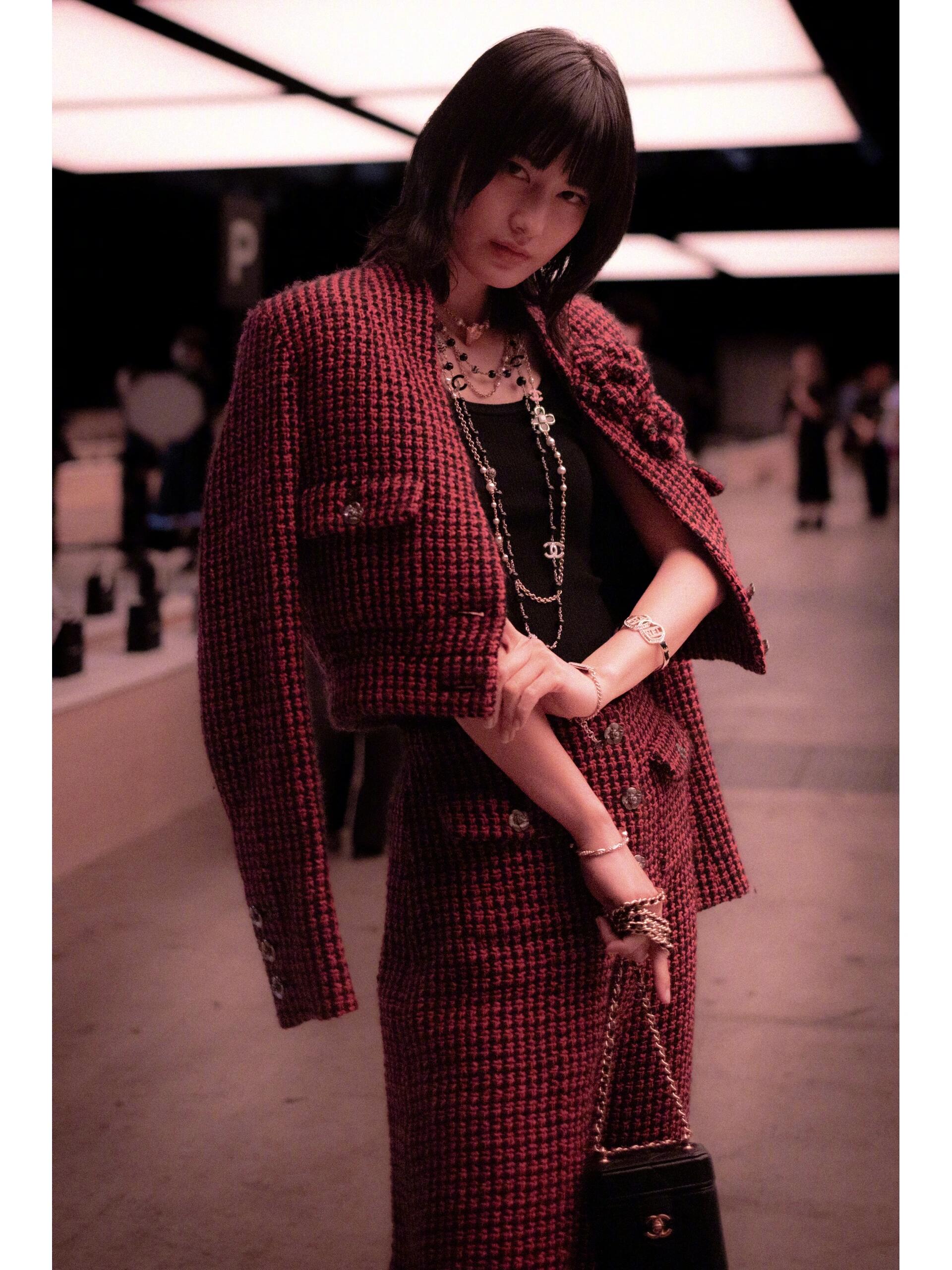 张天爱跟素人合影,胯真的好宽,大宅院似的