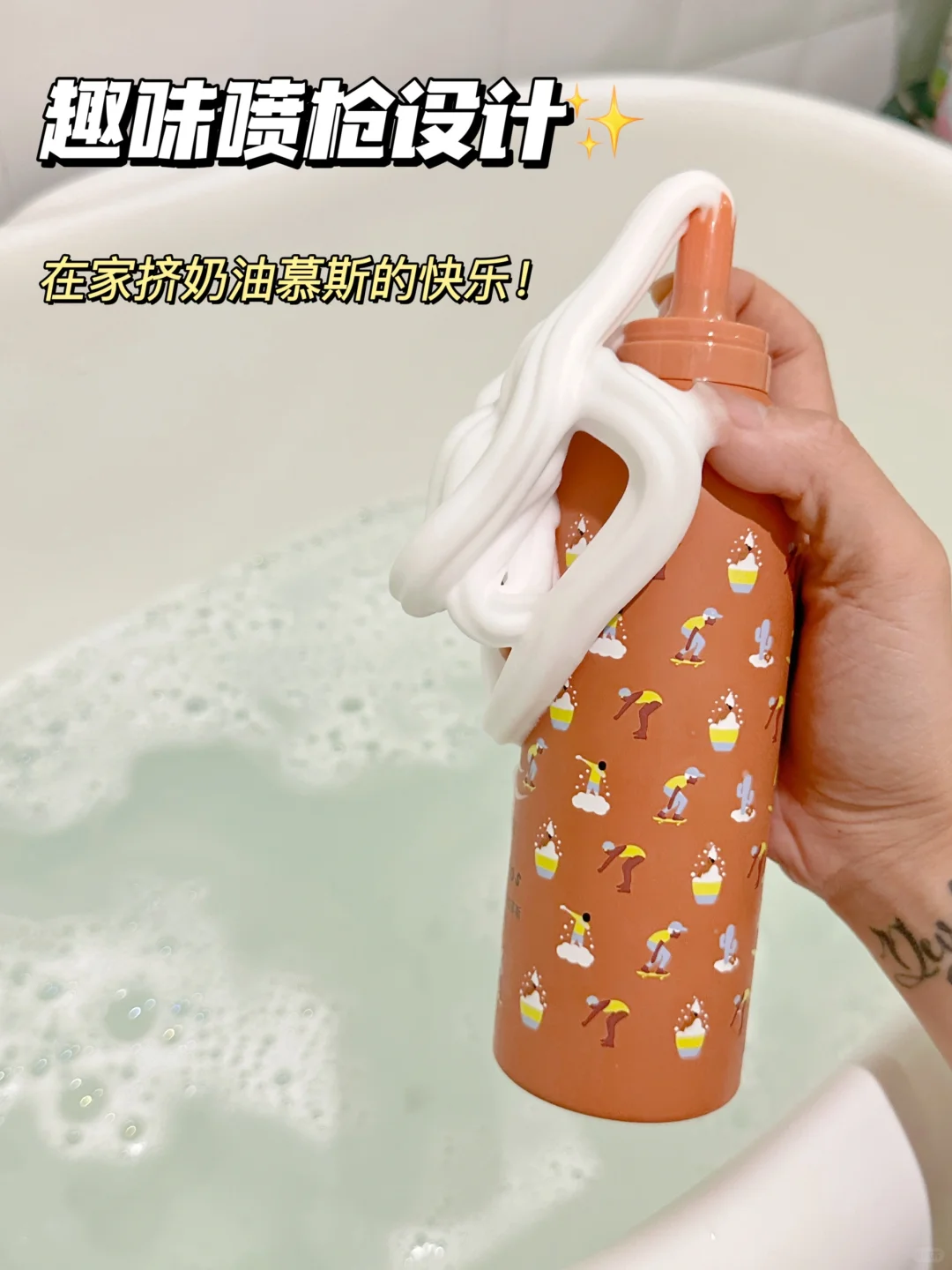 而且,还有一个绝妙的设计,那就是奶油喷枪!让洗澡变得有趣又好玩