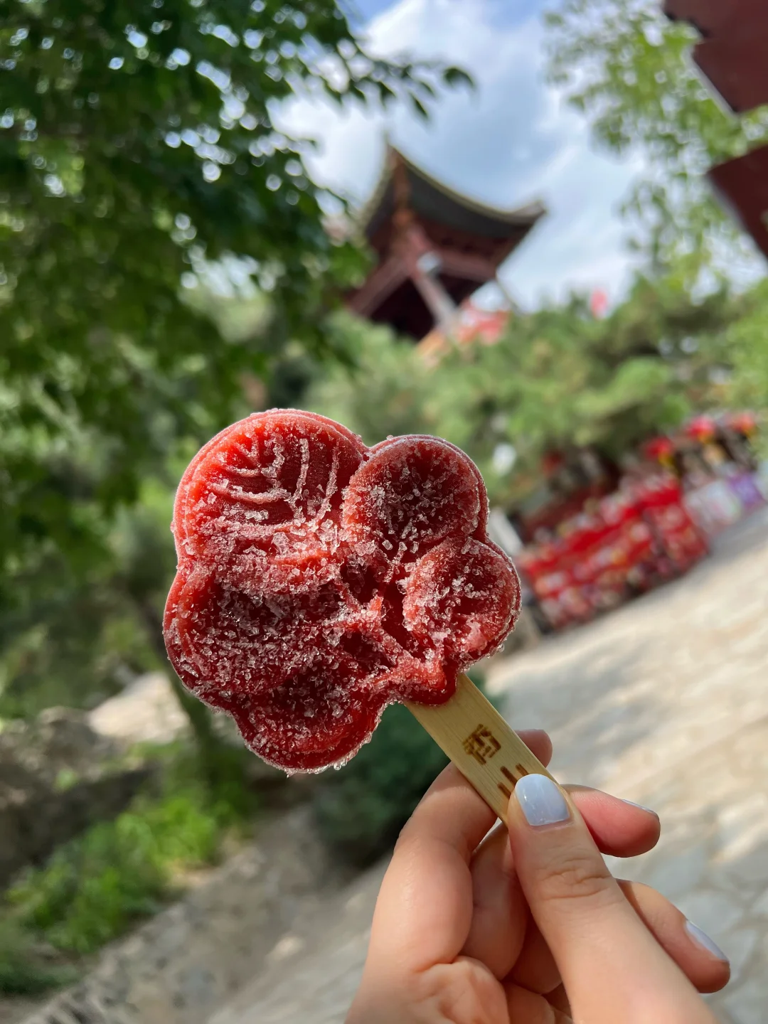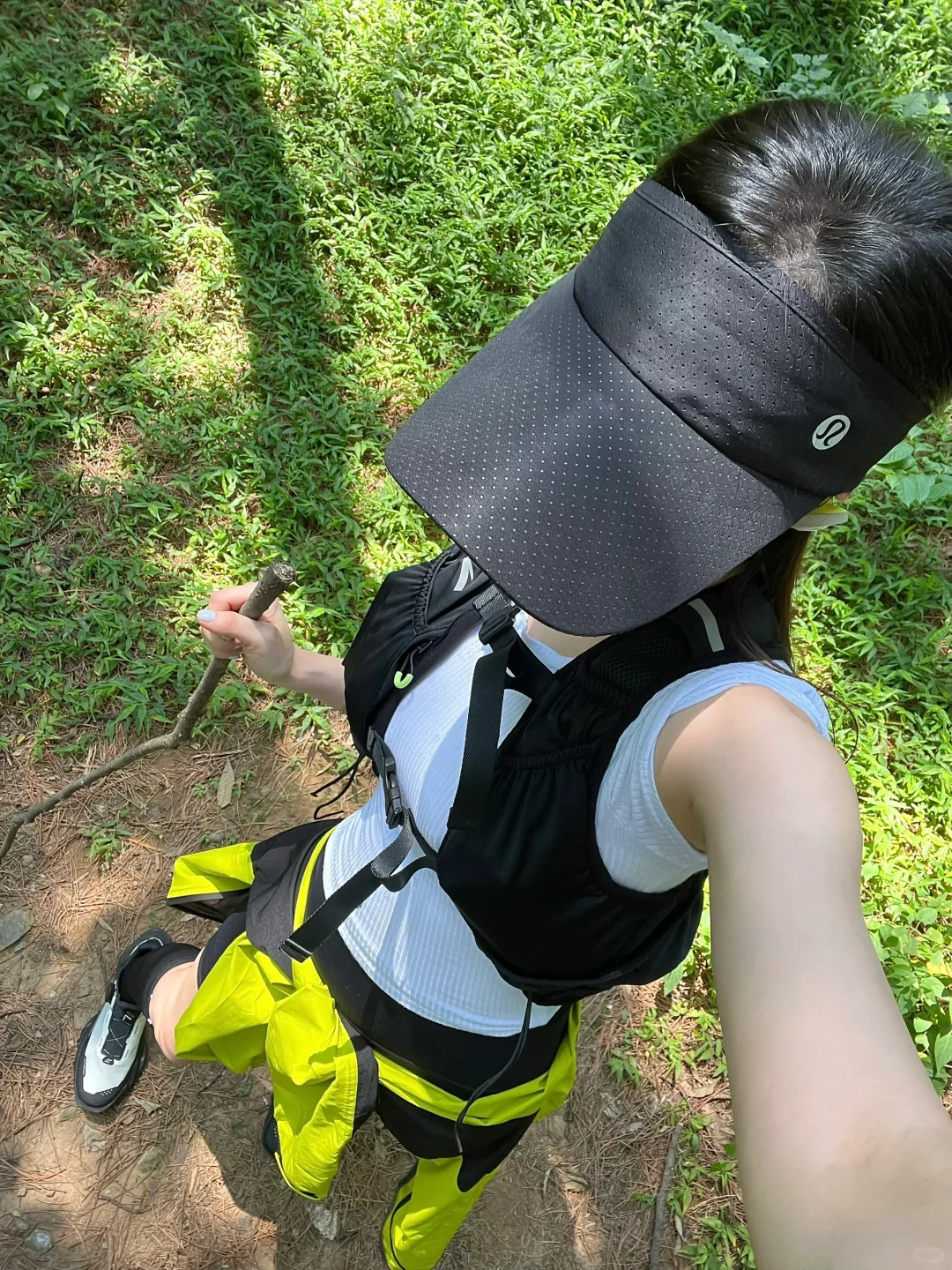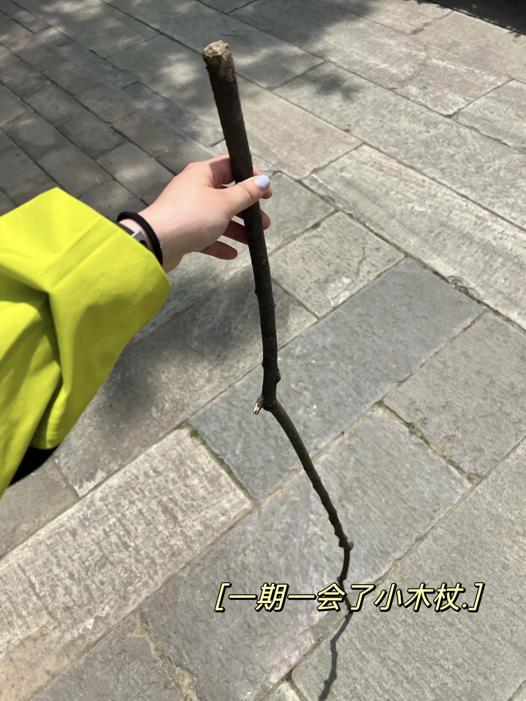 这次没有带杖,又在野林子里精挑细选了一根树枝🦯(掉在地上的),刚抓的时候上面都是土还怪喇手,等我准备回家的时候已经被我“盘”的很丝滑了~一期一会的留在了公园门口。