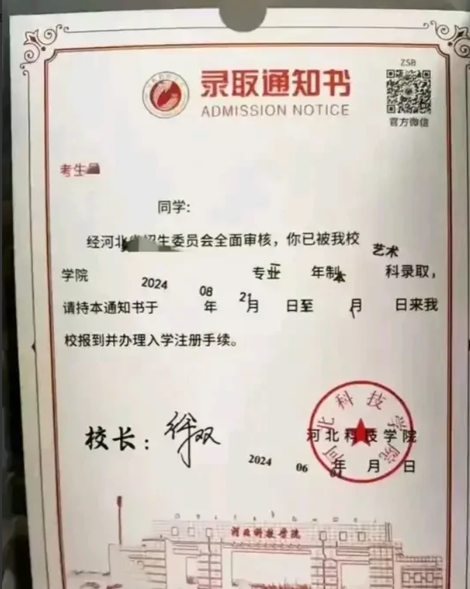 录取通知书是学校的名片,这张名片能做成这样,那学校的教学质量可想而知了。