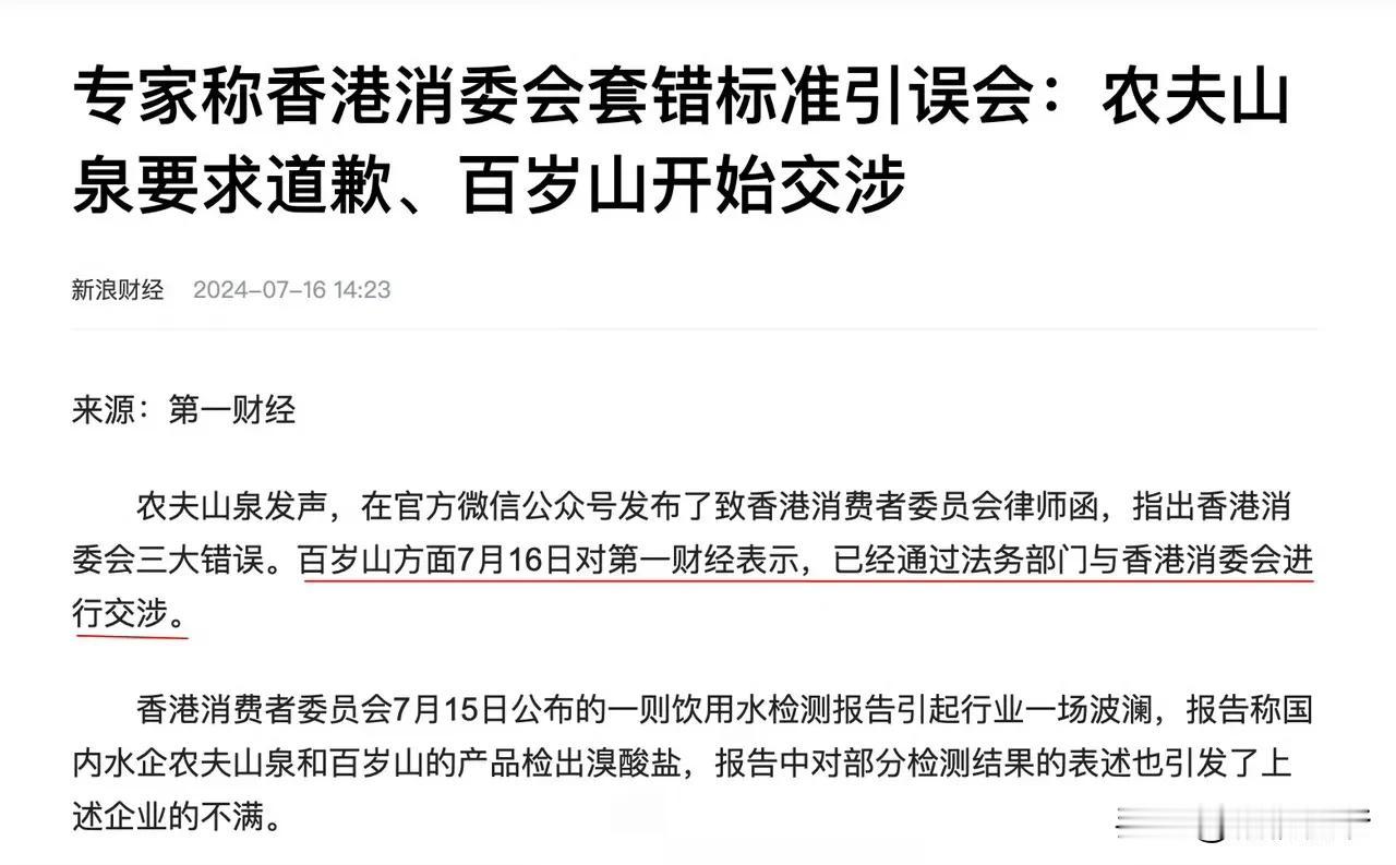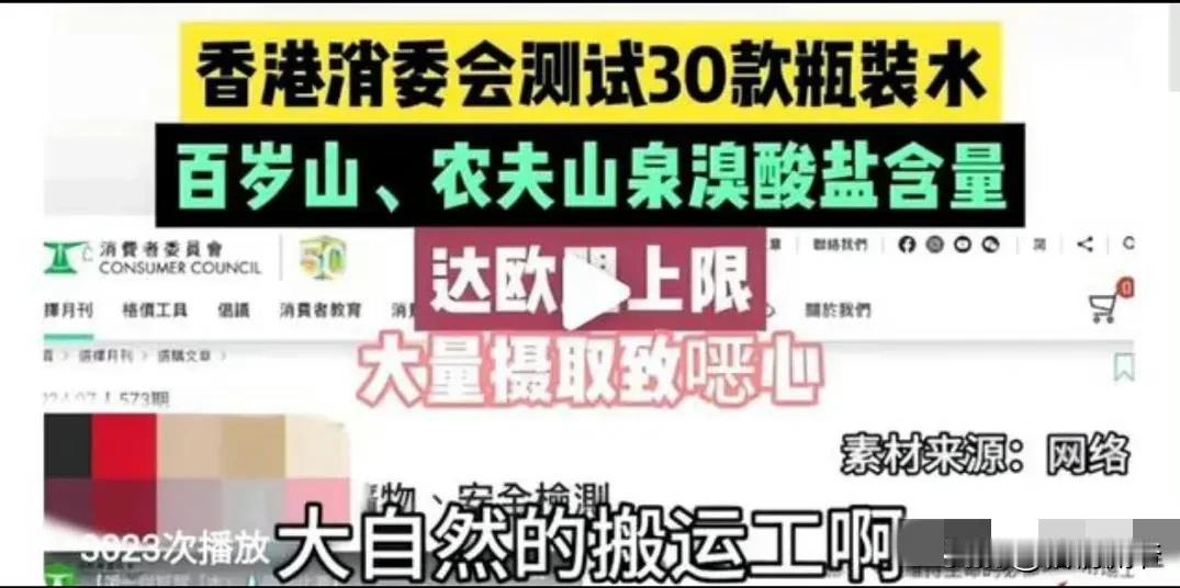 农夫山泉陷入溴酸盐超标争议!食用油已经彻底沦陷,现在又要轮到饮用水了,还有什么日常食品是安全的吗? 7月15日,香港消委会发布消息称,经检测发现,在香港市面上销售的内地品牌农夫山泉和景田百岁山瓶装水样本中,溴酸盐含量严重超标。根据香港消委会的观点,大量摄取溴酸盐可能导致恶心、腹痛等症状,严重者还可能伤及肾脏和神经系统。 针对香港消委会的检测结果,7月16日,农夫山泉通过官微发文称,已委托香港律师要求香港消委会向农夫山泉及其消费者郑重道歉。据农夫山泉方面的律师函称,香港消委会的文章存在“错误理解和非专业分析”,对农夫山泉产品的溴酸盐含量评价非常不客观,存在故意误导,并要求香港消委会书面道歉。 对此,网友们意见存在较大分歧,不少网友表示支持农夫山泉,认为香港消委会引用的数据错误,标准不统一,文章存在严重的不公和偏见,有些人甚至直指一些香港媒体双标,属于典型的殖民地思维,认为农夫山泉应该采取法律行动进行对抗。不过,也有一些网友对农夫山泉的质量表示担忧,应该提高自身标准,切实维护自身产品的安全。 根据最新消息,香港消委会表示已经收到律师函,正进行研究,并重申送检的30款产品并未发现有害物质超出世卫组织的标准,都可以安心引用,显然这是在打自己的脸。 #香港消委会回应农夫山泉律师函# #农夫山泉中的溴酸盐从何而来#