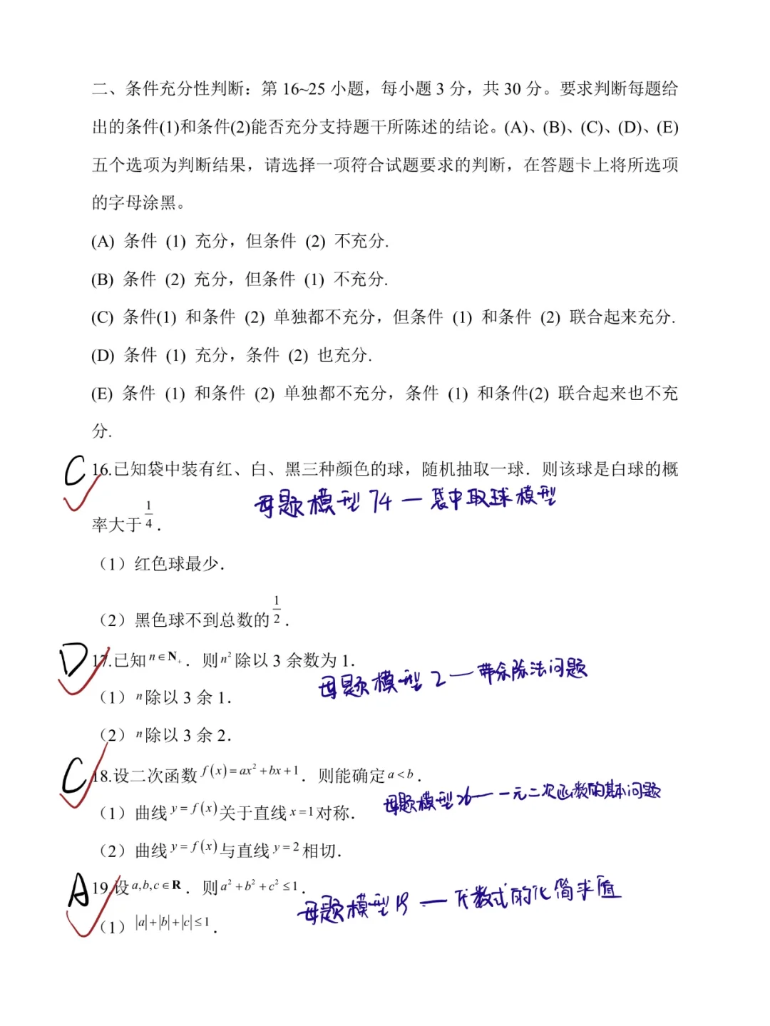 现在21天打卡学霸打卡计划已经结束了,如果你不知道做什么可以做一做真题,来试一试看看能不能准确快速的发现题目里具体是哪个母题的题型。 这次给大家标注出来母题考点为的就是让大家可以根据自己的掌握程度,有针对性的去复盘,有问题可以随时问我。 往后每周我都会更新一次真题,下周不见不散。
