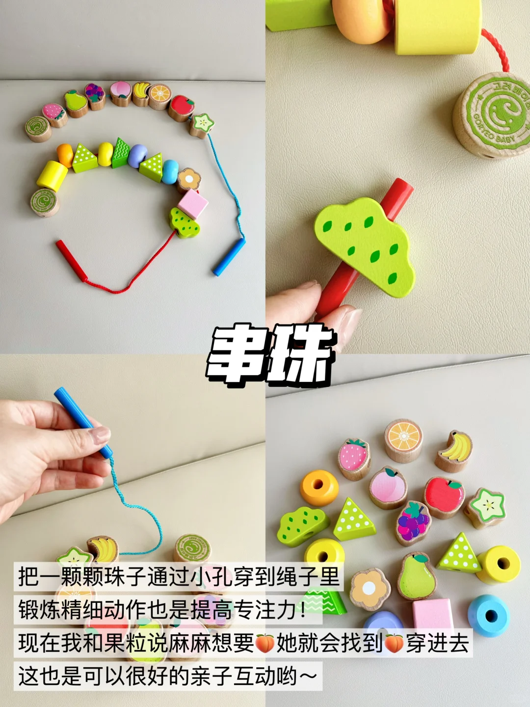 果粒已经是1岁7个月的小孩姐啦! 她的玩具我也是更新了一波 下面这些都是益智好玩、翻牌率超高的 提高✔️认知力✔️创造力✔️模仿力 买对不买贵!好玩不费妈👍 ⭐️果蔬切切乐 ⭐️果冻贴纸书 ⭐️串珠 ⭐️嵌板 ⭐️点读笔 ⭐️积木桶 ⭐️泡泡机 ⭐️推推乐 ⭐️扫帚组合