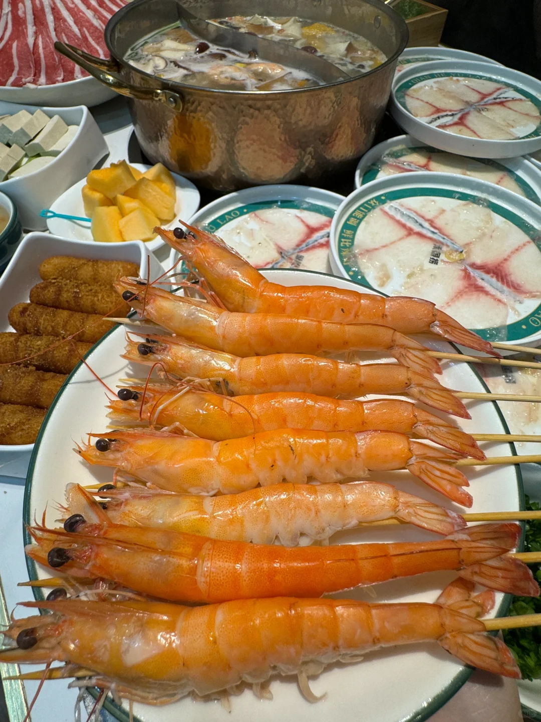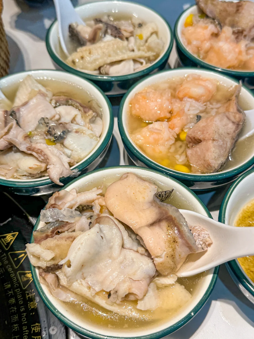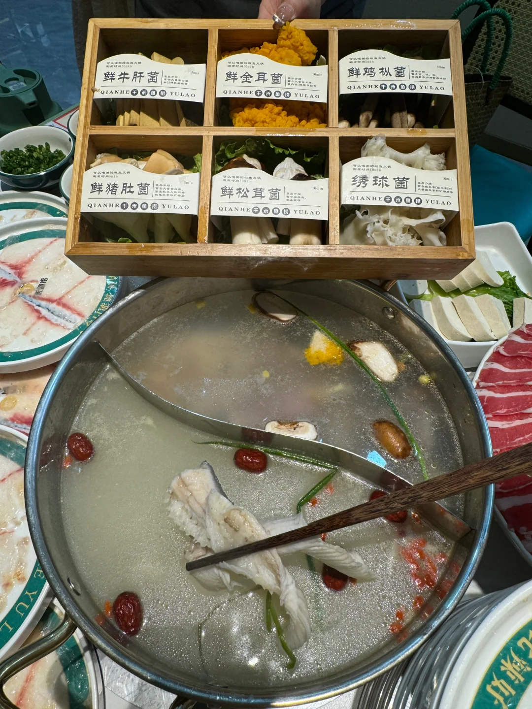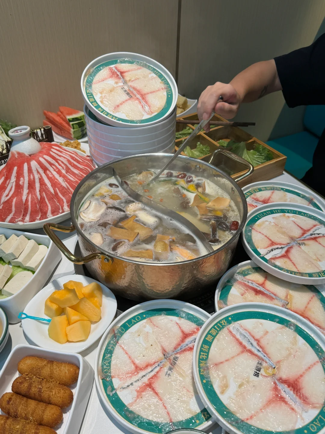 他家的饮品也惊到我了 颜值又高又好喝!!强推开心果椰子水🥥 特别清爽! 还有好鲜活的斑鱼火锅➕粥底火锅!!鱼片晶莹剔透还没有刺 吃起来真的太鲜美了🥺 而且他家的锅底是米熬的粥 吃完鱼片可以吃粥 加上鲍鱼 大虾一起煮真的鲜掉眉毛了🤤