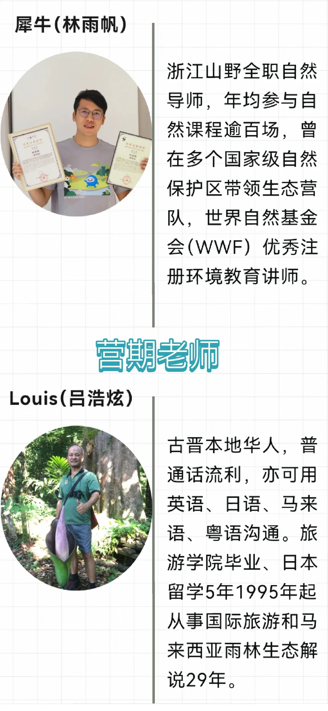 浙江山野全职自然导师,年均参与自然课程逾百场,曾在多个国家级自然保护区带领生态营队,世界自然基金会(WWF)优秀注册环境教育讲师。。
