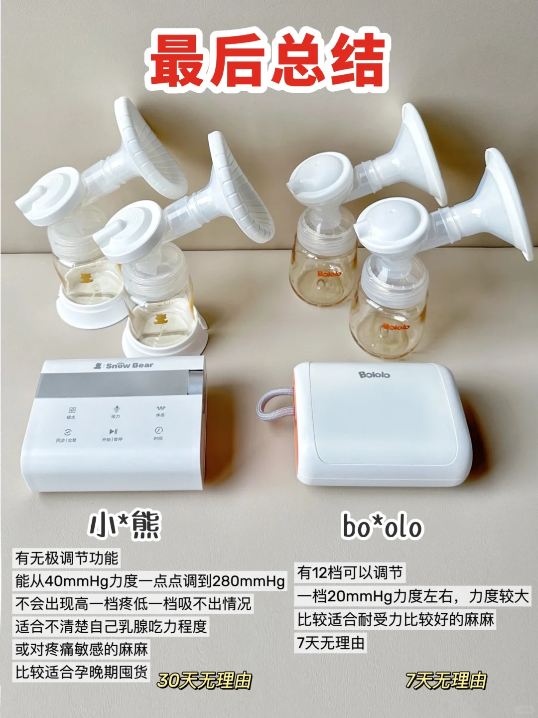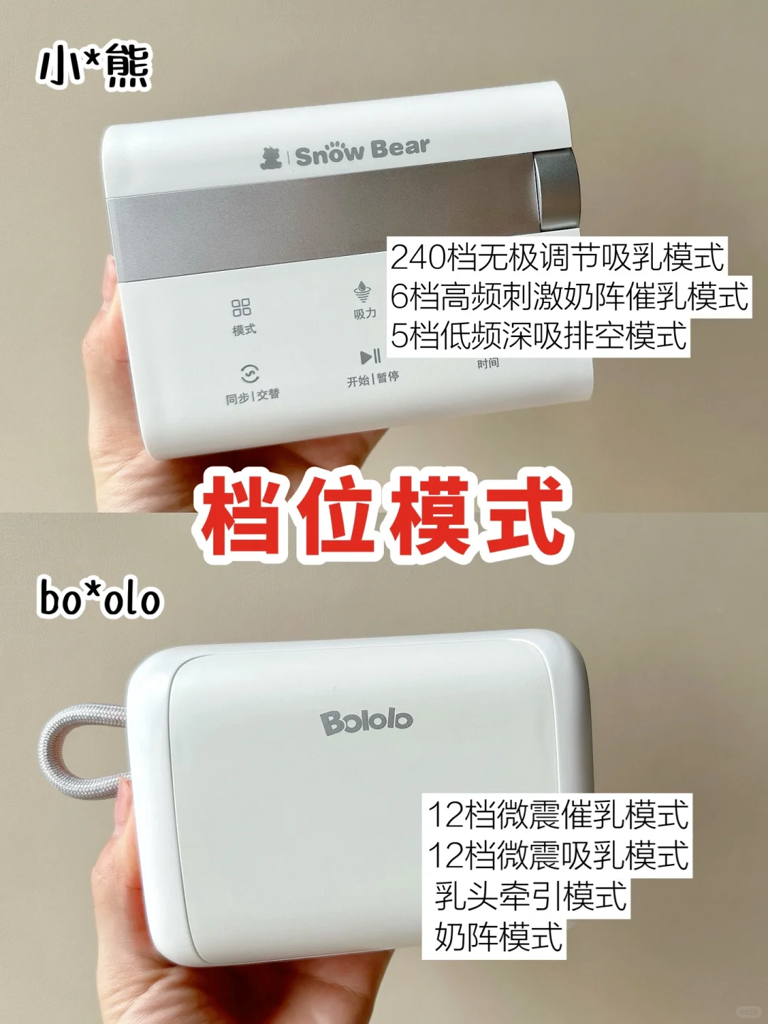 👉小*熊有240档吸乳模式无极调节、6档催乳模式高频刺激奶阵、5档排空低频深吸