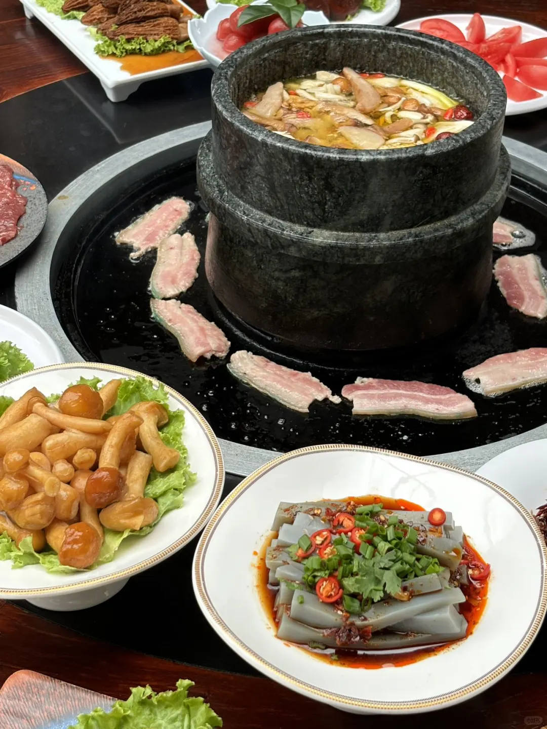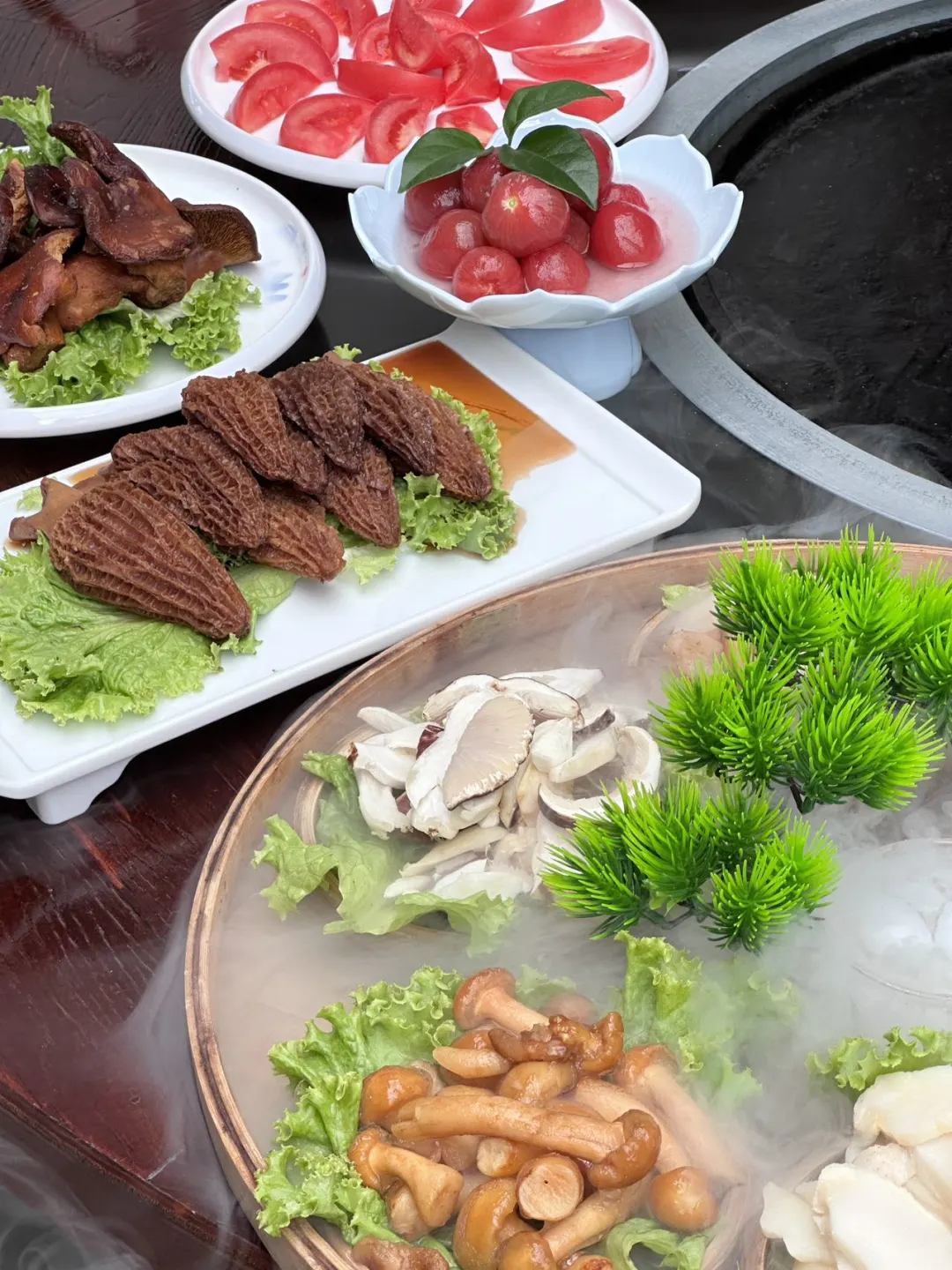 丽江朋友介绍给我的这家松间菌香,里面有56种菌菇的火锅,简直是菌子迷些的天堂啊!吃正宗野生菌来他家就对了。🍄 🔥 这家火锅有三样宝:菌汤锅,鲜得你眉毛都要掉下来;腊排骨汤锅,醇厚得跟老酒一样;还有松茸汤锅,高级感直接拉满!建议先整一锅菌汤,那味道,简直不摆了!再搭配上腊排骨、牦牛肉,肉食爱好者些,你们懂得撒!🥩 🏷️ 丽江菌子、野生菌火锅、