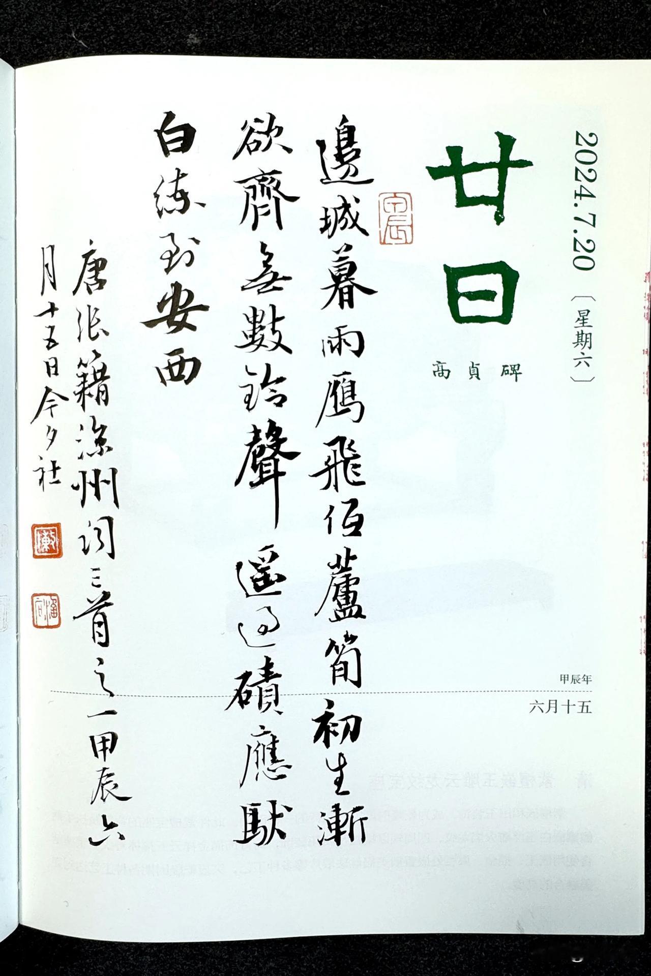2024/07/17-2024/07/21, 《故宫日历》每日瞎涂。 笔:墨社今夕软玉,晚晴 #书法# #小楷# #行书#