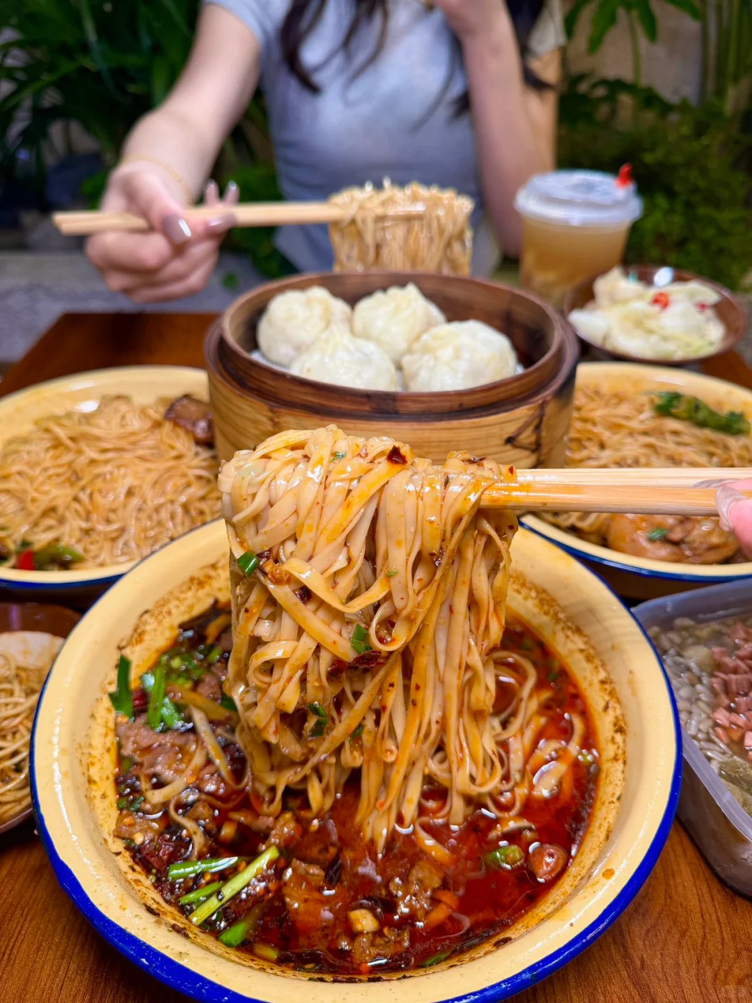 今天和朋友一起来春熙路专门吃这家面馆 刚进店就被扑面而来的香味给吸引住了…… 看到哪一个都想尝一尝,种类也太丰盛了吧!👏 全部都是现场炒制臊子!实在是过瘾‼️