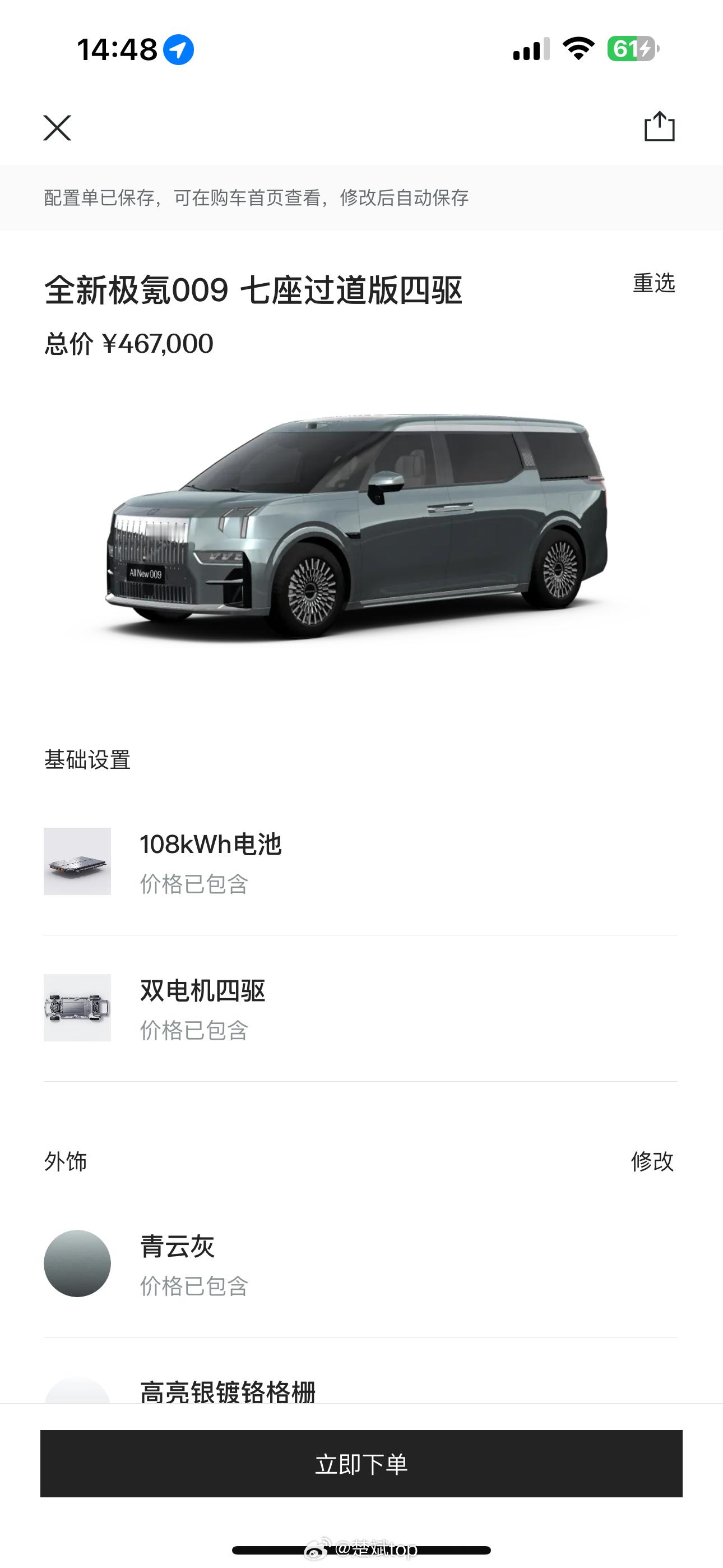 纯电MPV三叉戟,刚才试着选了一下自己满意的配置,理想MEGA没有选配,标准配置完全都用;极氪009加了个光之泉高亮镀铬格栅;小鹏X9选了个座舱升级套装,现在都是800V的车了,补能速度都没没问题,也都有7座版本,价格方面MEGA 52.9万 VS 009 46.7万 VS X9 43.58万, 要是你的话你买谁? #东北电吹#
