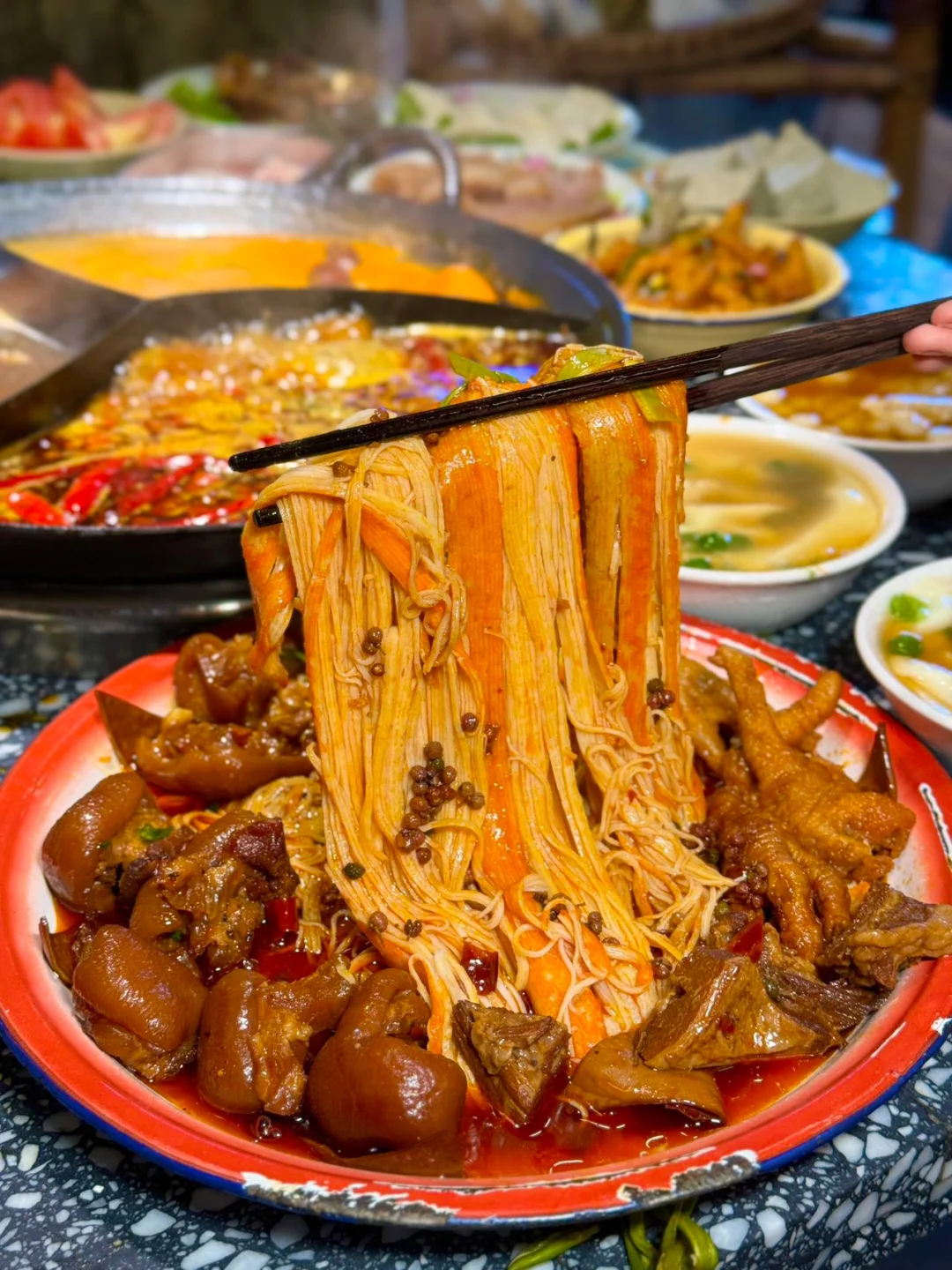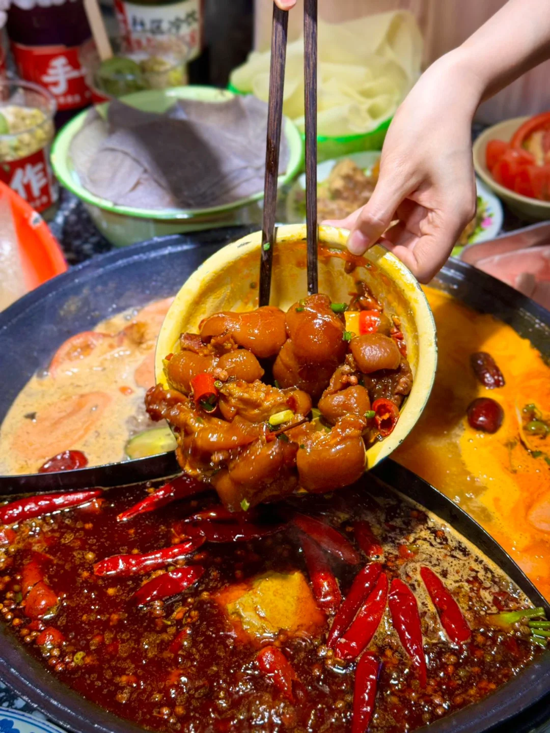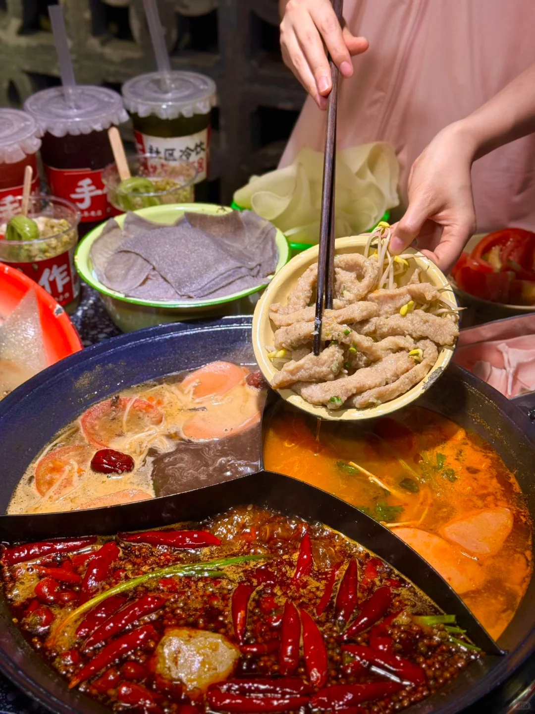这家社区火锅好吃的有点离谱…… 建议所有喜欢吃火锅的朋友都来尝一尝👏 菜品味道好,而且非常的丰盛‼️ ✅奔驰三味锅是一定不能错过了 社区红锅+贵州酸汤+菌汤锅底 一次性吃到三种锅底,一整个惊喜住了!