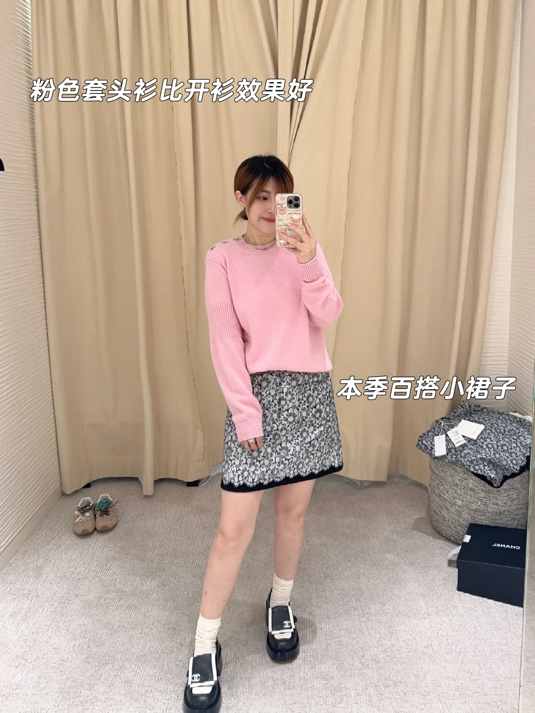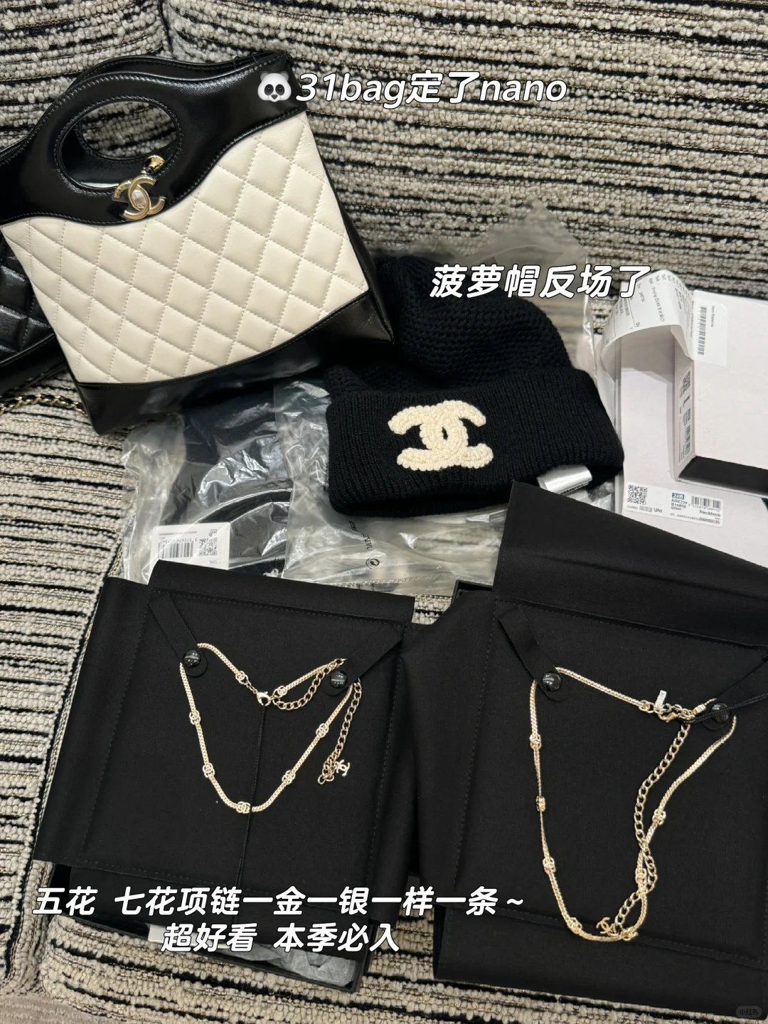 这季都说平平无奇 但是回归的书包扣元素我真的很喜欢呀 特别vintage 复古味十足~ 拼色乐福鞋也完全长在我的审美点上 配黑袜子应该也很美! 露肩连衣裙太喜欢 奈何我不能露肩 [哭惹R] 推荐直角肩的姐妹试一下 爆好看 黑色粉色书包扣针织衫都很好看 粉色显白 黑色经典 这次很火的项链金银色很难取舍 有五花七花两个size 围巾帽子什么的样子也很多 我买的这几个价格合理 31bag黑白色也很洋气 我等一个nano ☝️ 总之我觉得这季性价比挺高的 很实穿实用