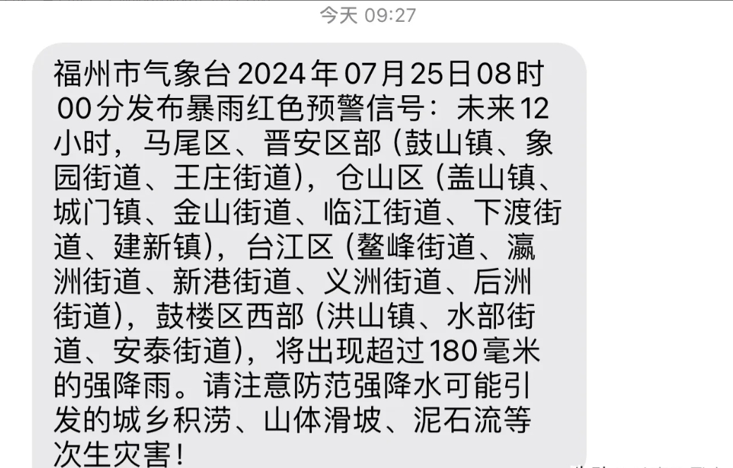 “格美”强台风目前到了台湾海峡中部,我在福州,目前风不大,能感受到间歇性的暴雨,早上九点半收到了福州气象台发布了暴雨预警信号。