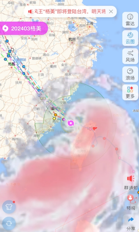 携带着巨量水汽的“格美”预计在福建沿海登陆,巨量的水汽遇到冷空气终将化成雨,挥洒在沿海及内陆的大地上,沿线城市居民必须警惕强降雨风险,注意防范城乡内涝、山体滑坡、泥石流等次生灾害。