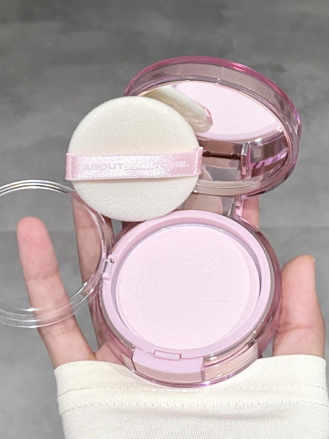 这还是我认识的abouttone吗! 限定新品丝带粉饼 半透樱花粉银撞色好米! 伪素颜底妆再添一员大将 你是古希腊掌管伪素颜的神叭! 粉质好细腻!而且还带丢丢细闪 感觉像丝带拂过脸颊一样 超级丝滑的触感 上脸也很清透 而且不是很假面的那种超级哑光 是保留了一点自然光泽感的妈生肌 早八伪素颜有了它简直打遍天下无敌手! 还附赠一个粉扑 可以放在粉饼里面很方便携带 大胆预测!下一个断货王就它了!!
