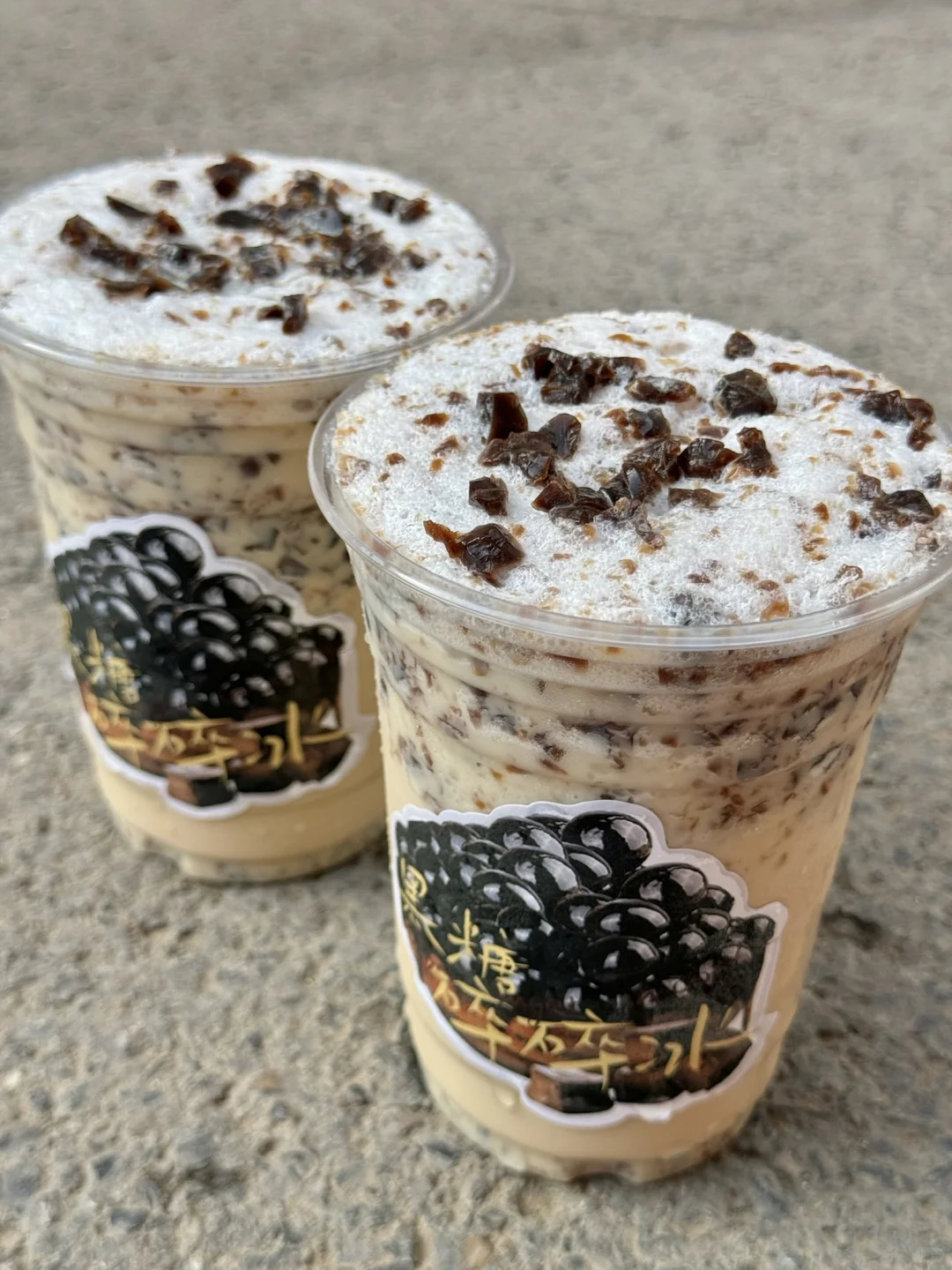 新开的!!20+两杯奶茶还送泡泡机🫧明信片 也可以选择托特包哦 强烈安利黑糖碎碎冰超好喝🥲