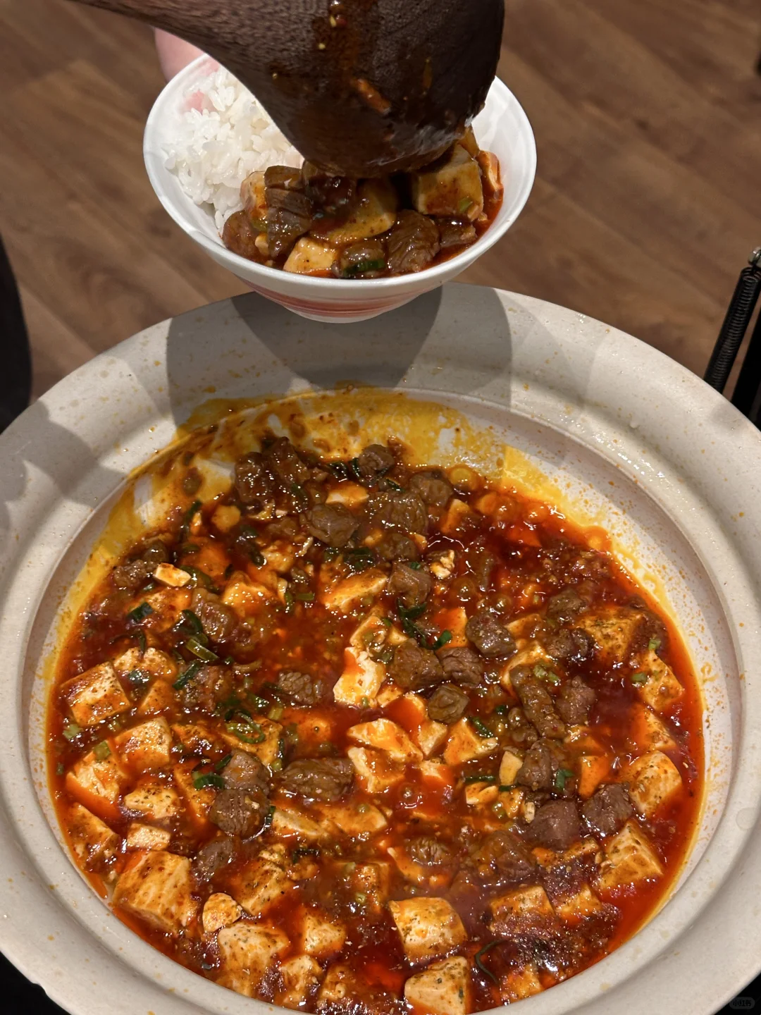 - 独栋小洋房,装修很有格调,有大厅也有私密的包间,很适合宴请。 - 菜也很好吃,尤其是雪花牛肉麻婆豆腐,惊艳到我,巨下饭,而且雪花牛肉特别多。还有毛血旺、辣子鸡、料多多的冰粉…每个都好吃! -