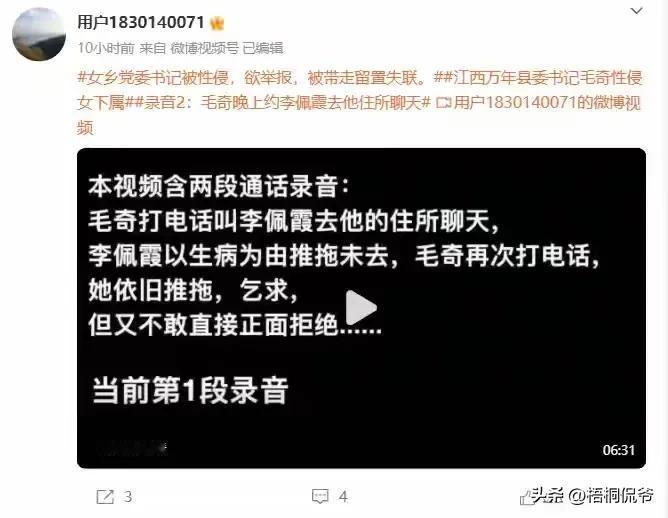 接二连三!万安县毛奇书记性侵女乡党委书记风波尚未平息,云南昭通又曝出公安局纪检组长严某某与女下属的性丑闻。 根据举报者提供的录音显示,疑似严某某的男子说“你放心我不会乱拍照的”,女方则回应道“书记你酒喝多了”,男子又连说两遍“亲一下”,女方又说“书记你喝多了”。 看来举报者也是受到万安县李佩霞事件的启发,直接通过网络举报,虽然存在很大风险,但也省去了很多麻烦,正常途径举报可能没什么效果,这下压力就给到了当地有关部门。 “为政以德”,为官之道在于以德服人,若官员们在道德上存在瑕疵,甚至走向违法犯罪,又何以做老百姓的表率呢,又何以能治理好一个地区呢。
