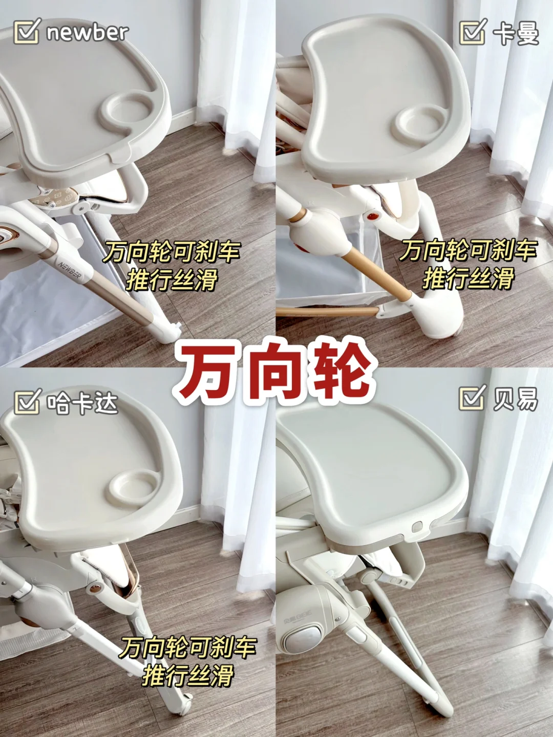 四款都是免安装:座椅主体、餐盘、(万向轮)