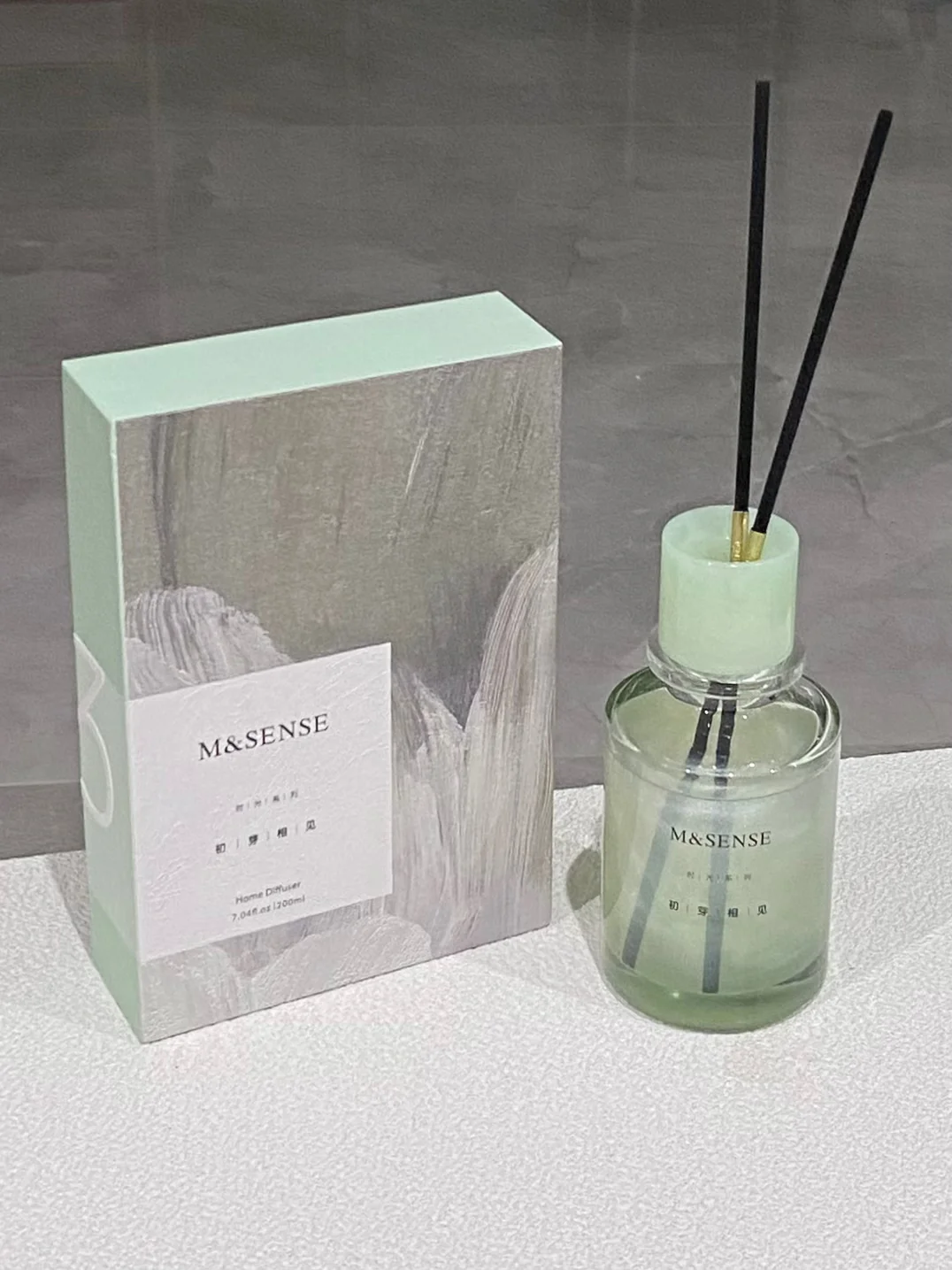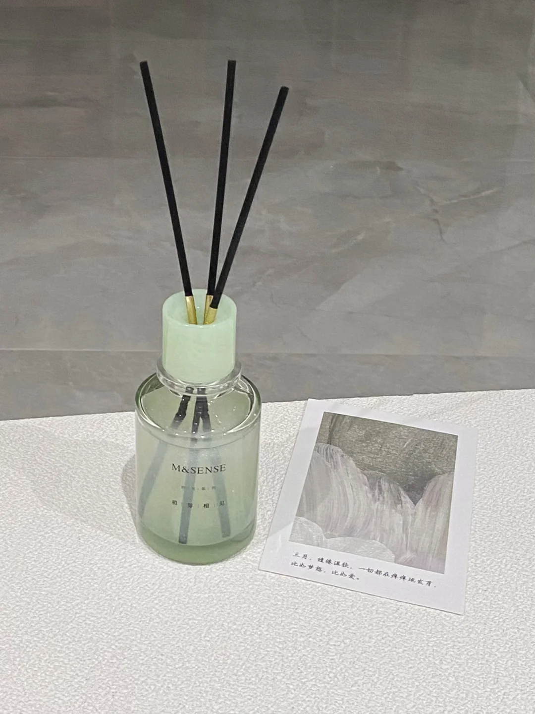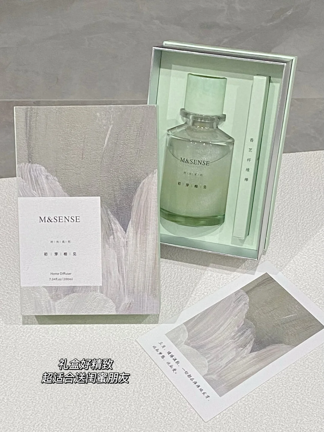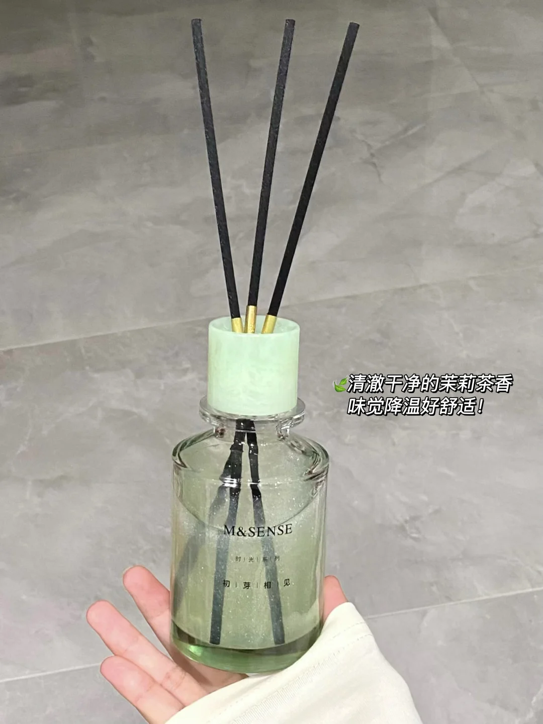 夏日人生香熏我找到了!! 是蔓莎时光系列的初芽相见无火香薰 闻一次就停不下来了! 仿佛又回到了三月 清凉又温软的季节 感觉周围被绿意环绕 嫩芽生机勃勃地生长 都不敢想象下班回到家 闻到这么清澈干净的茉莉茶香 我会有多么开朗!! 初闻是带一丝丝甜味的蜜桃丁香 慢慢地 清新的茉莉和温雅的铃兰花味时间扩散开来 最后转变为稳重干净的木质调 沉浸其中感觉班味都被冲走啦! 而且光看颜值都很养眼 透亮的水绿色还有细闪 送闺蜜也超级精致!