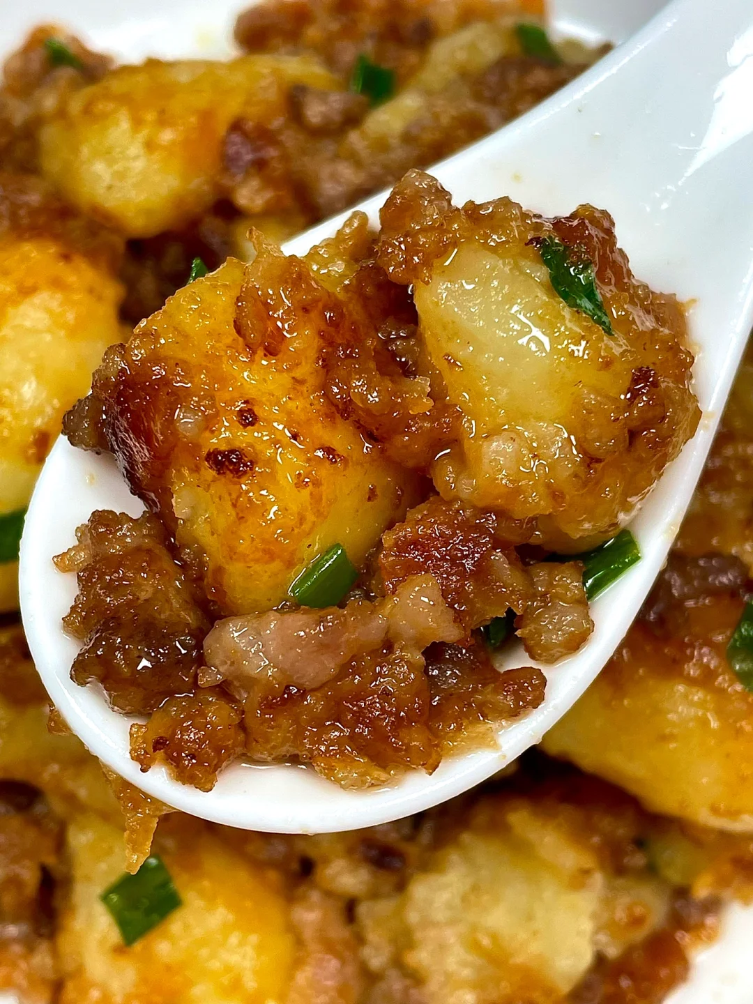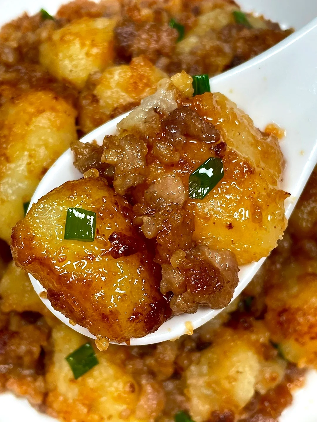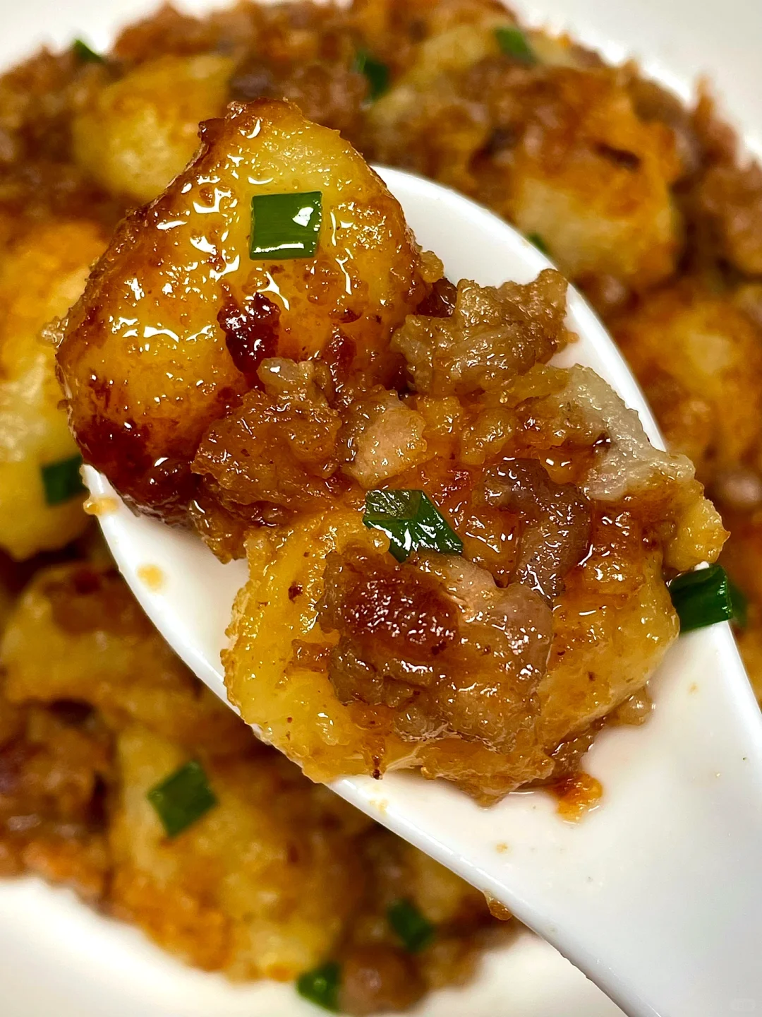 巨香巨好吃的肉末土豆!一人能炫一大盘[色色R] 外焦里糯的土豆,配上焦香入味的肉末,真的香迷糊了[哭惹R]拌米饭吃嘎嘎下饭!做法简单,一定要去试试!! [向右R]食材:土豆➕肉末 [向右R]做法:如图所示!