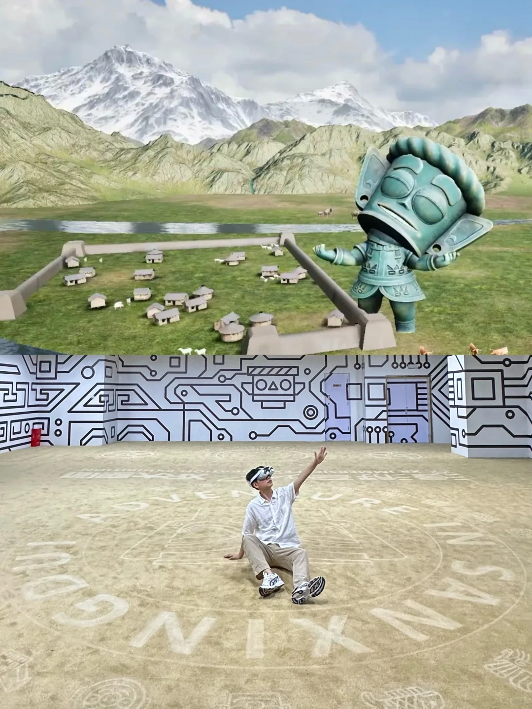 时代天街免费的明信片盖章!!![哭惹R] 100多种“三星堆古迹印章”挑花眼了 很喜欢青色铜鸟,大家快冲!!! 室内的VR展也特好玩,沉浸式体验 还有陶猪、金面、青铜神树冰箱贴周边