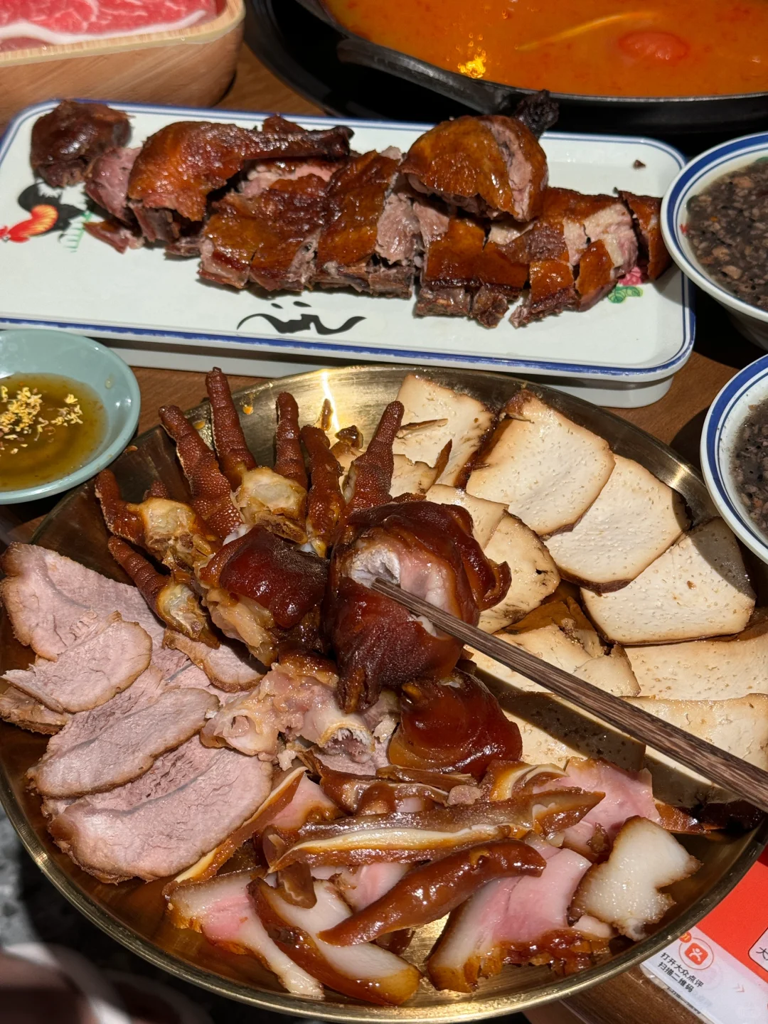为了这一口脆皮鸭还有老重庆辣卤拼盘 真的可以反复来吃🥹🥹🥹 脆皮鸭配上桂花酱 甜丝丝的 鸭皮超脆 辣卤拼盘🍱配上秘制酱汁 吃起来软糯入味 特别是猪蹄!