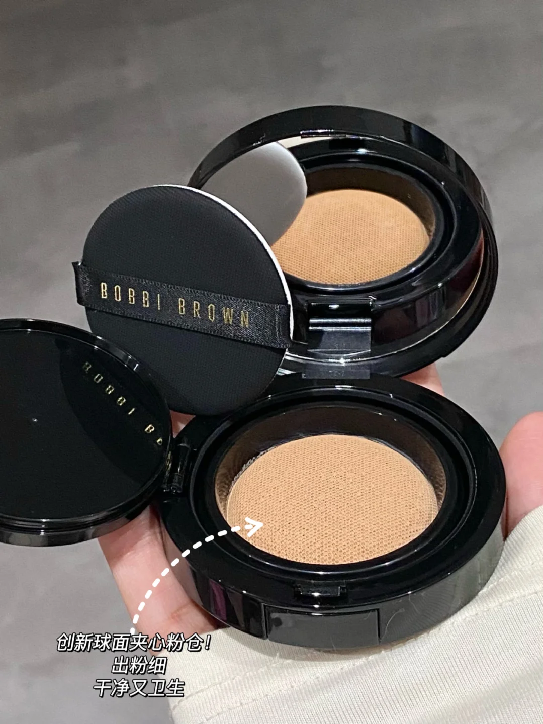 BobbiBrown设计师不要太会! 新品黑夹心气垫🖤纯黑浮雕高级感好酷! 又一个适合早八人的服帖持久气垫! 还是头一回见这样的球面夹心粉仓 内层超级密 筛出来的粉体特别细腻 外层锁边还能防回流 干净又卫生 每次取粉都很均匀轻薄 关键遮瑕力还不错 真正做到了轻薄又遮瑕 上脸是很清透服帖的雾光妆效 原生感max! btw它还自带防晒SPF40 PA+++ 一整天下来持妆力也杠杠滴 基本没有妆面斑驳的情况 特别适合夏天油皮混合皮用