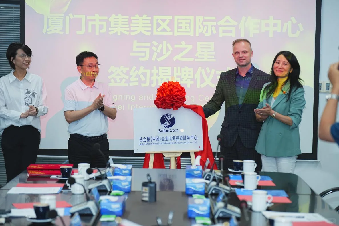 沙之星(中国)企业出海投资服务中心 Safari Star (China) International Business Development Hub 庆祝我们沙之星正式落户厦门集美区,为中国企业出海提供境外企业落地和税务合规的服务!为中国企业出海保驾护航 感谢集美区政府领导的邀请和支持! 我们的服务包括:公司注册,法律和税务咨询 税务申报 薪酬发放等相关的企业落地服务