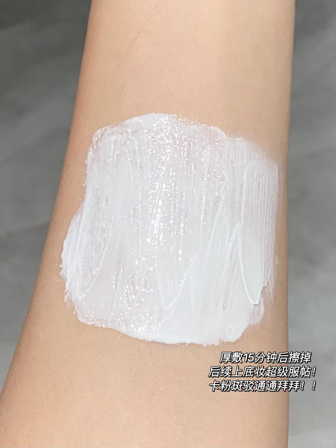 厚敷15min(像鼻翼这些容易卡粉的的地方那可以适当揉搓几下)之后擦掉再上妆