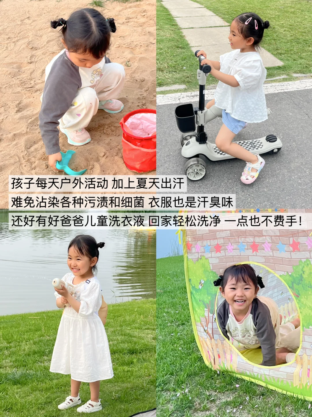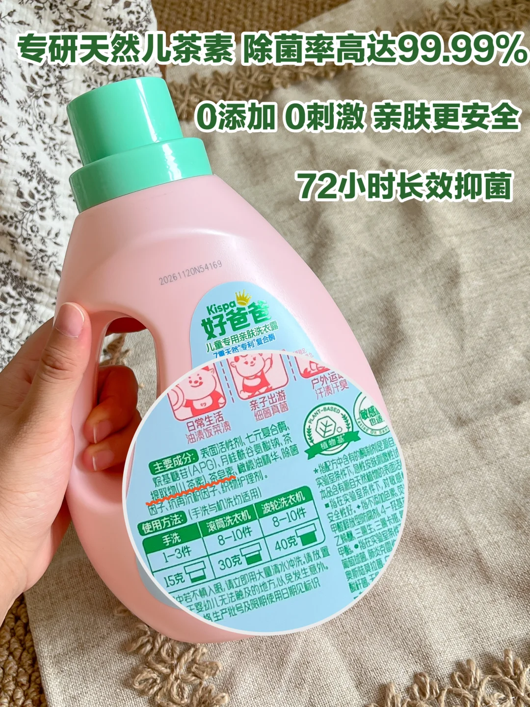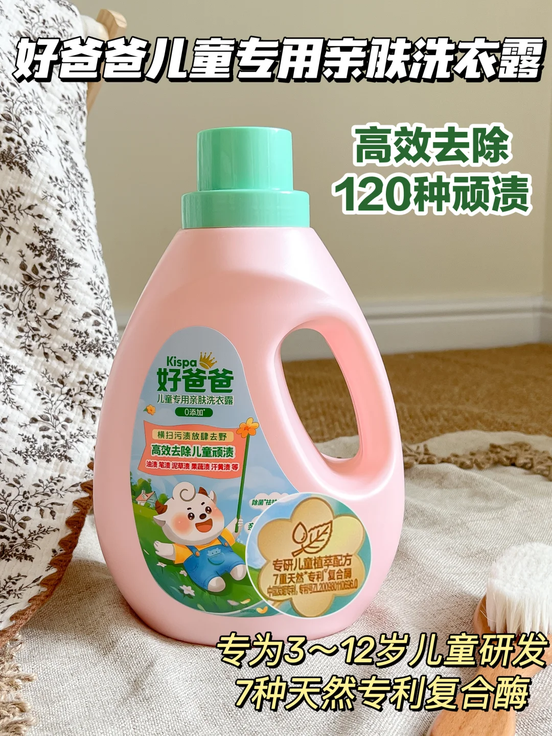 我家现在一直用的就是好爸爸儿童专用亲肤洗衣露,它是专为3~12岁儿童研发,7种天然专利复合酶,120多种污渍都能轻松拿捏,像宝宝衣服上的油渍、画笔印、饭渍,用它浸泡一会就溶解了,用手轻搓,衣服就干干净净的,想偷懒还可以直接扔洗衣机清洗!