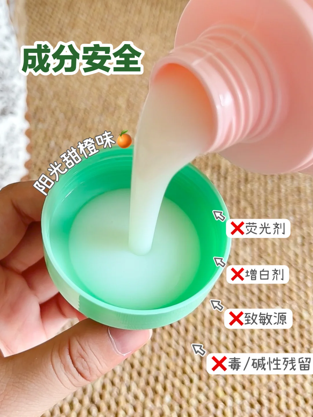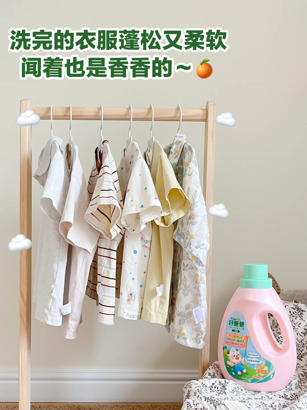 成分全公开打消了家长的顾虑!0添加、0刺激,还有中卫安亲肤认证,给宝宝用妥妥的放心❤洗完的衣服蓬松又柔软,还是阳光甜橙味🍊,整个衣柜都是香香的~