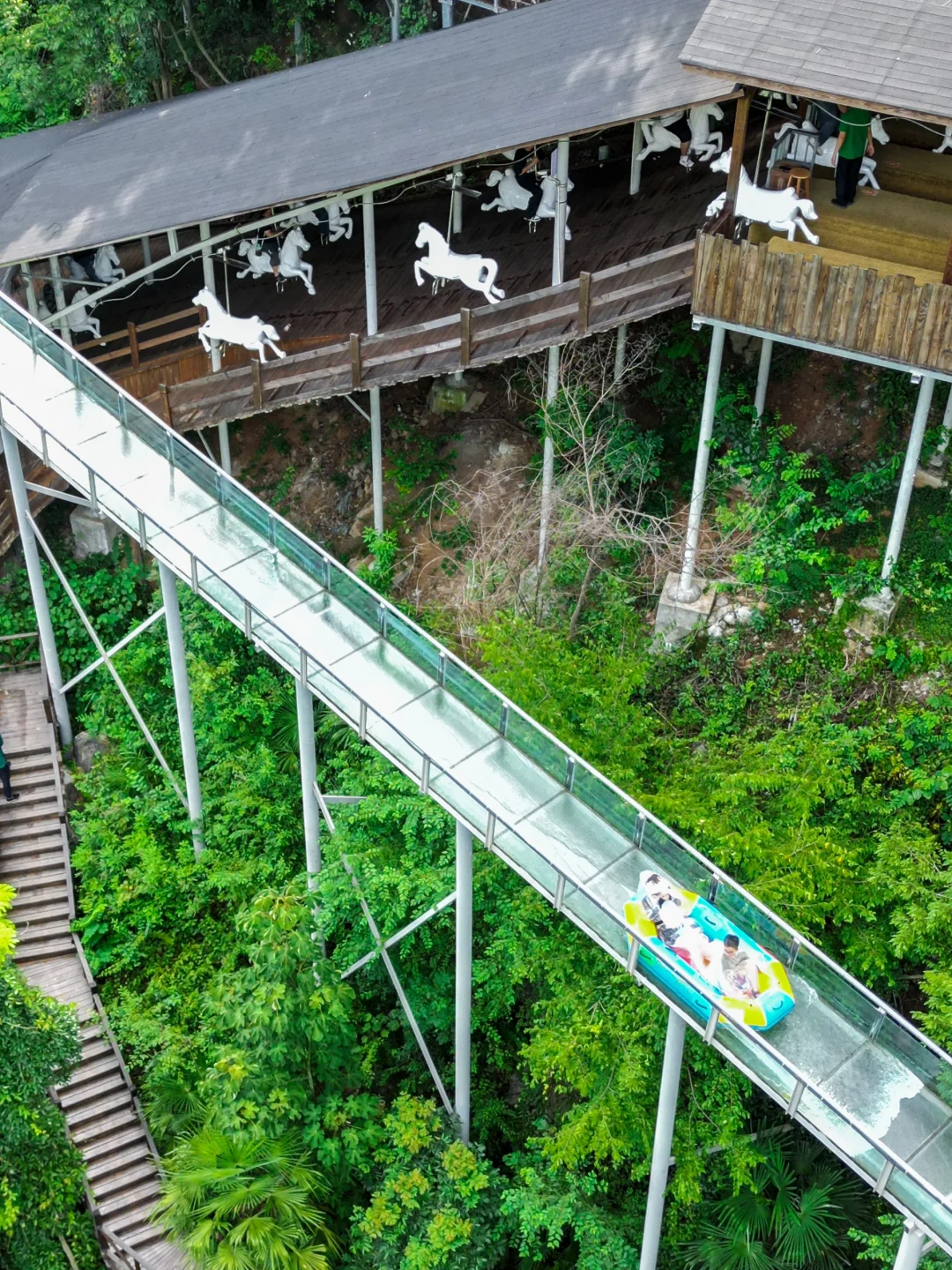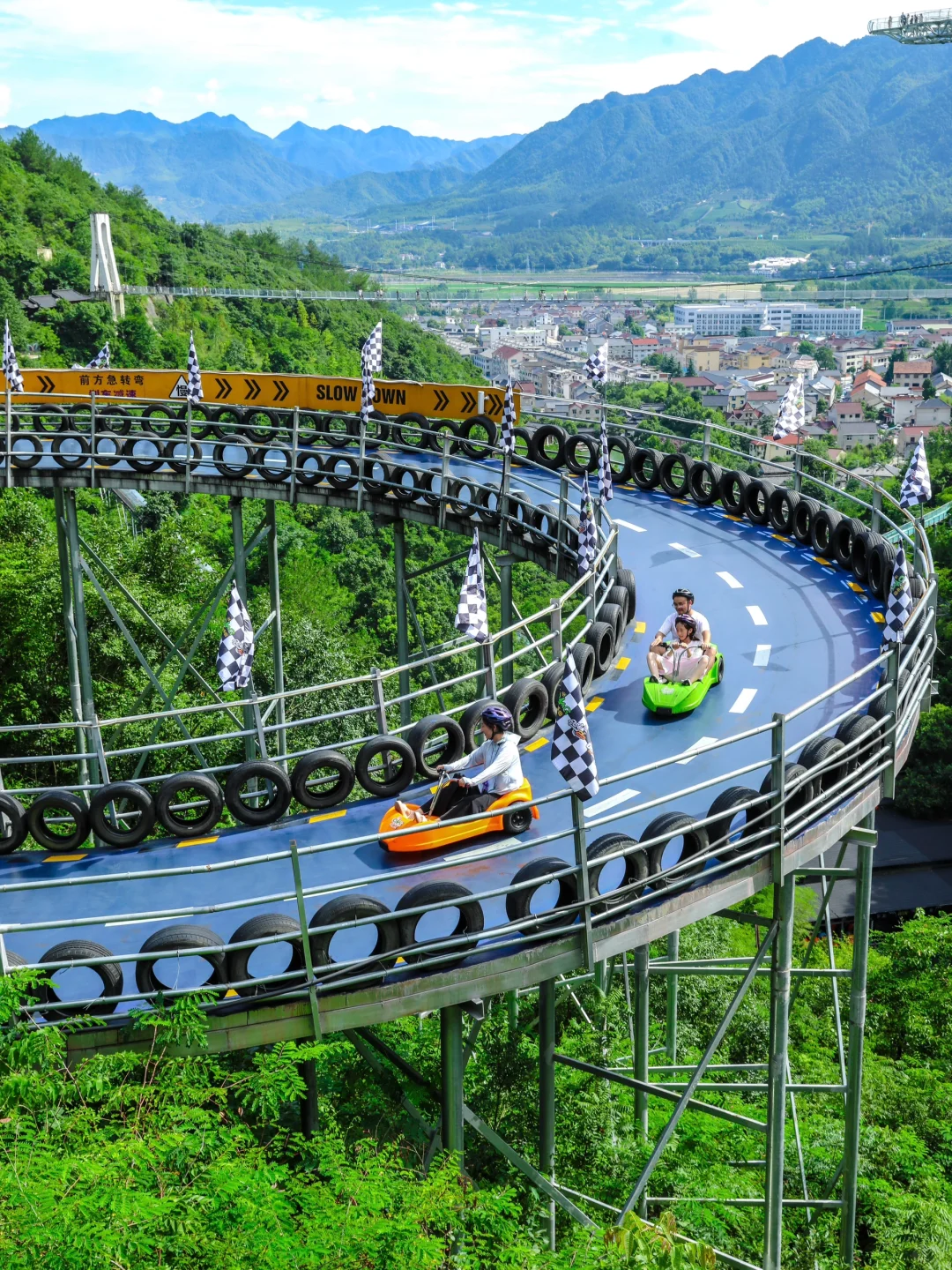 其实,之前我看到类似的拉踩贴都是嗤之以鼻的 万万没想到,我也有真香的一天🤣 · 这家位于杭州桐庐的户外乐园,种草了很久,终于趁这个暑假和朋友一起打卡了! 风这么大,究竟妙在哪里??刚玩回来,听听我的真实感受! 👇🏻 ✅ 真·避暑❗️就算炎炎夏日,通天河溶洞里也只有18度,同船的小朋友直喊冷🥶 ✅ 真·好玩❗️类似的项目其实杭州周边有不少,不过这儿作为鼻祖确实有点东西,尤其推荐天路飞车!🏎️ 玩到爽! ✅ 真·人多❗️暑期周末来的确有点被人潮吓住😱不过景区很人性化地推出了多条游玩路线,只要稍微变通一下,体验感就能提升许多🆙 ✅ 真·宠物友好❗️作为养狗家庭可太爱了,看到好几只毛孩子一起来玩,为景区点赞👍🏻 · 🗺️ 个人推荐路线: 人多的时候,先别排游船,排队很夸张。 🉑爬上山直奔1号自动天梯→凌云天桥→长空秋千→九天云廊→天路飞车→天马行空→凌空漂越→通天河游船(一波反向操作) 这么走的话,入园即是娃感兴趣的游乐设施,森林探险还有野外捕鱼等等。上到半山驿站后,坐云梯直达天桥,开始勇敢者的心跳💓体验。玩完漂流后再坐游船参观溶洞,结束一天的酷热与疲惫~ · 📌推荐打卡: 1️⃣ 天路飞车 QQ飞车真人版,九曲十八弯,卡通的配色,如果你是“秋名山车神”,那上来飙一下啊 2️⃣ 凌空漂越 环绕山谷的下山漂流,水花飞溅,非常畅快。途经奇幻森林,景色也不错。 3️⃣ 通天河游船/地心科考队 这俩建议一起游玩,坐船进入溶洞,非常凉快,“摇橹人”会做专业的讲解。游船结束后,可以继续地心科考队项目,自己按照路线游览溶洞,奇特的结构满足你探索的好奇心,适合带娃前往