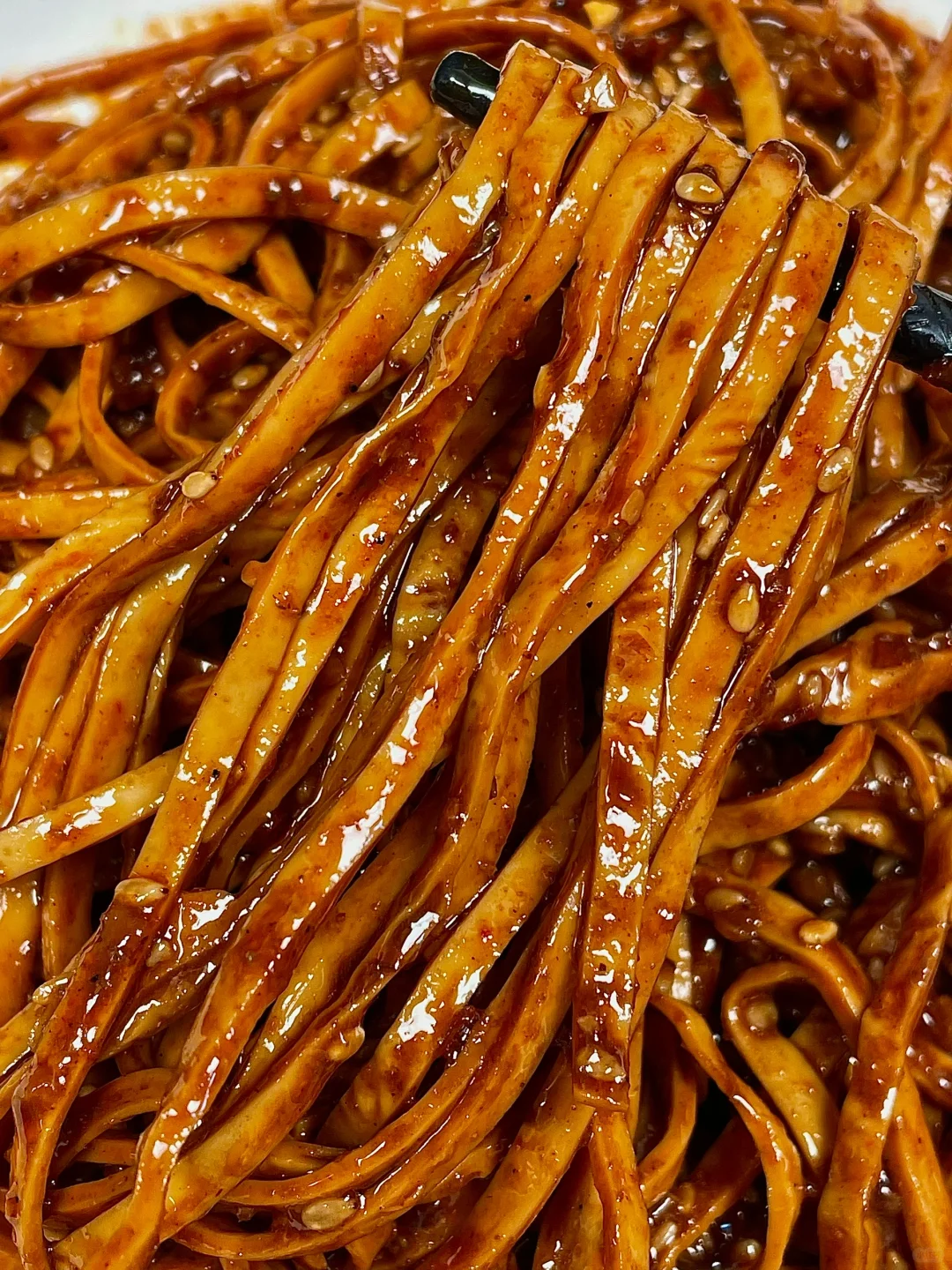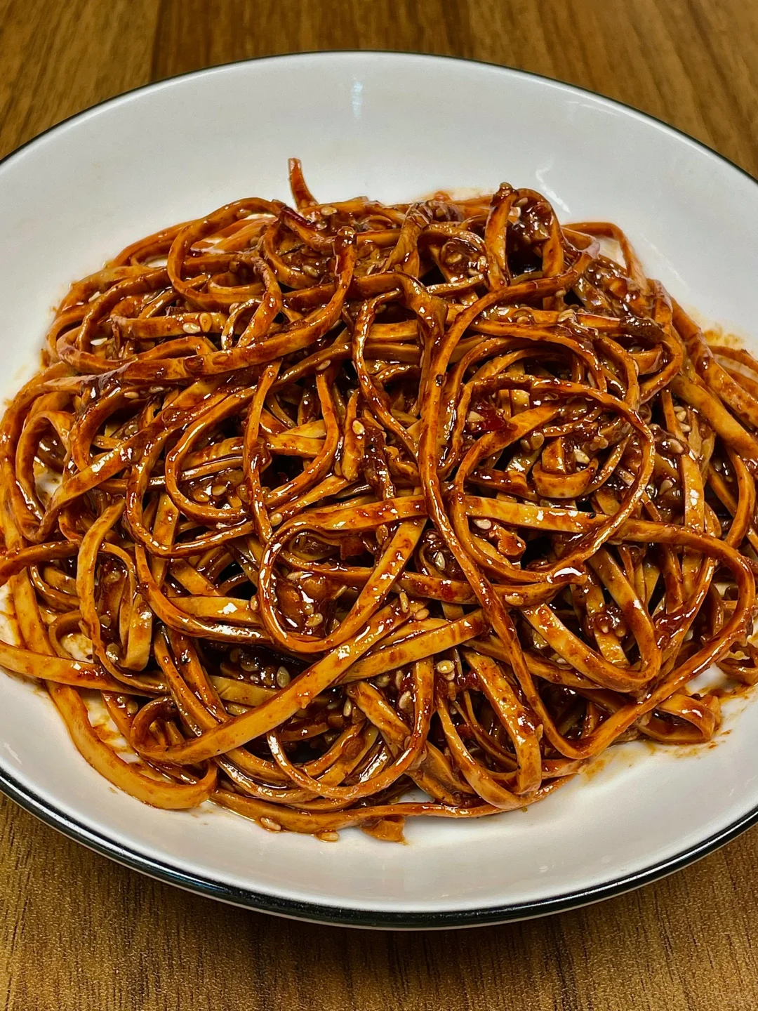 香辣孜然豆腐丝,求你们去做!一出锅就香迷糊了[色色R] 裹满酱汁的豆腐丝孜然味浓郁,香辣过瘾,吃上一口就停不下来了[哭惹R]真的巨香巨好吃!! [向右R]食材:豆腐丝 [向右R]做法:如图所示!