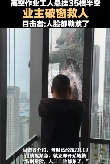 惊悚!山东青岛,男子住在35楼,突然窗外有人在拍打玻璃!男人瞬间吓破了胆,这可是一百多米,怎么上来的?定睛一看,原来是个农民工在高空作业时不慎滑落,命悬一线!接下来男人的举动感动了亿万网友! (信息来源:2023-06-02光明网——男子悬挂在35楼窗外,安全绳紧紧勒住脖子!) 一个平凡的午后,山东青岛某大厦外发生了惊悚的一幕,一名工人作业时不慎掉落,被安全绳死死勒住脖子,吊在35楼的高空。 恰好,9个 白领瞧见了这一幕,连忙打开窗户,准备施救。然而打开玻璃后,却被眼前的画面惊出了一身冷汗,由于窒息,工人的脸色发紫,浑身不断抽搐,随时可能撒手人寰。 此时120已经来不及了,危急关头,几个人打开抽屉,翻遍了屋里的杂物间,开始寻找剪刀、锤子、绷带等工具,下一秒,对着玻璃就是一通猛砸,只可惜这是高空特质钢材,一时半会根本无法砸碎。 经过思考,几人决定集中力量,先在玻璃窗上钻出一个小孔来,好让工人有个伸脚的地方,暂时缓解窒息。 随着工人的脚慢慢有了着力点,几个人又找来绳子把他与顶端的钢筋牢牢绑住,这样做是为了以防万一,毕竟100米的高度,摔下去可就骨头渣滓都不剩了... 随着时间一点点过去,玻璃窗上的窟窿渐渐变大起来,最后众人合力将被困者拉进了35层 的办公室中,彼时,这名工人浑身是血,脉搏极其微弱,为了让他能撑到救护车赶来,几名白领开始不断按摩、拍打他的肢体,好在奇迹发生了,伤者渐渐睁开了眼界。 事后,这件“英雄之举”被人传到了网上,引起了广大网友的称赞和震惊,35楼不顾危险,勇救陌生人,这情节电影里都看不见! 为了表彰9名白领的壮举,公司高层还特地为他们制作、颁发了象征荣誉的勋章,鼓励他们再接再厉,让这种乐于助人的精神成为企业的新形象! 谈及那天“惊心动魄”的救人过程时,9个人纷纷表示,太凶险了太刺激了,由于脚下就是百米高空,再加上情况危急,众人又不是专业人员,只能硬着头皮干下去了,好在最后成功救下了被困者。 对于这9名白领来说,他们挽救的不仅仅是一位工人,更是他背后的两个家庭,他们的举动配得上“英雄”两个字。 在和平年代,英雄不一定要背着炸药包舍身炸碉堡,更不用冒着枪林弹雨 ,与敌人血拼。只要心怀善良,有一颗乐于助人的理念,在他人遇到困难,命悬一线时,能够不顾自身安危勇于出手的,这就是英雄,值得每一个公民敬佩和学习!
