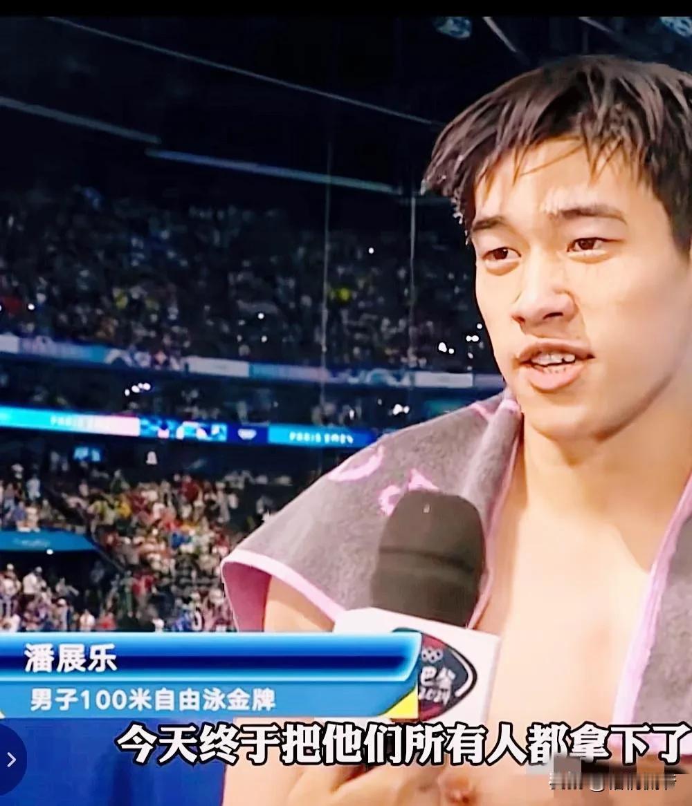 国人当自强,潘展乐,你做到了! 面对美国选手的冷漠,甚至是刻在骨子里的歧视,潘展乐用自己的成绩,狠狠地打脸了那些习惯歧视黄种人的西方国家运动员和媒体。赛后接受采访时,他对着镜头自豪地呐喊:今天终于把他们所有人都拿下了! #潘展乐夺冠时的咆哮女解说是谁#