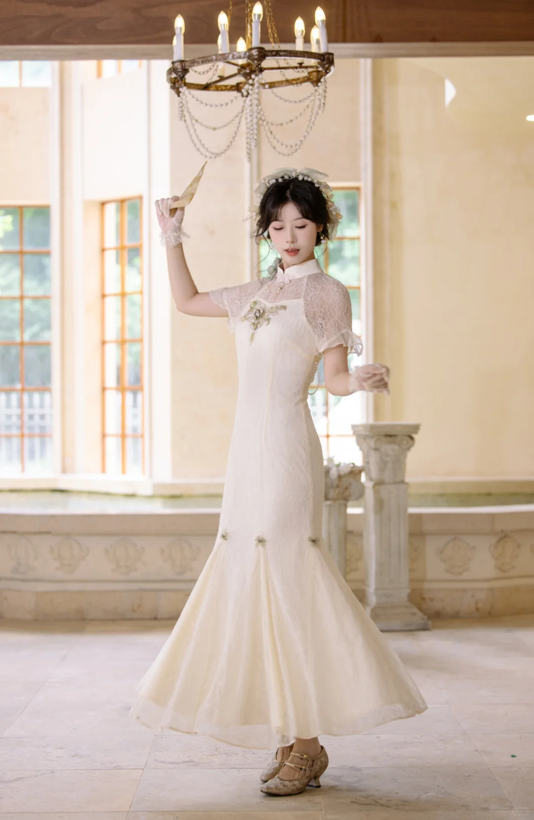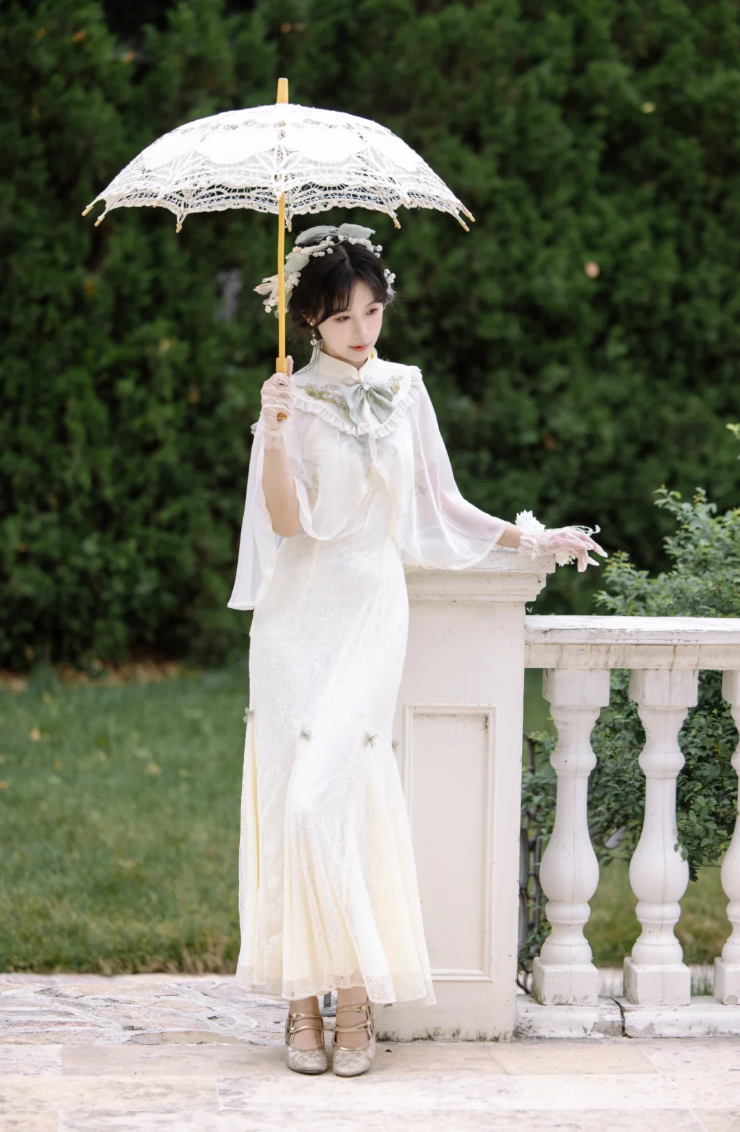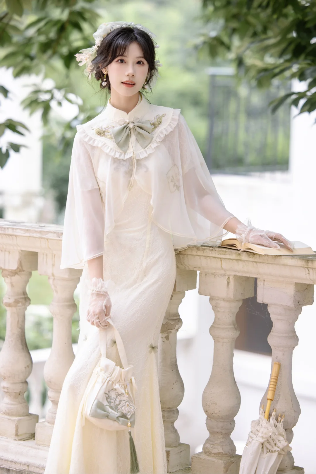 八月初的小上新,为大家准备了一件日常优雅的蕾丝鱼尾旗袍裙啦[派对R] 搭配上轻盈刺绣斗篷,穿上仿佛一位华贵世家小姐 举手投足间尽显少女的优雅气质 · 还做了多个氛围感小物,无论是日常旅行还是出席重要仪式场合穿着都很合适[喝奶茶R] —— 全套限时一口价424元!第一批也为大家准备了现货喔~