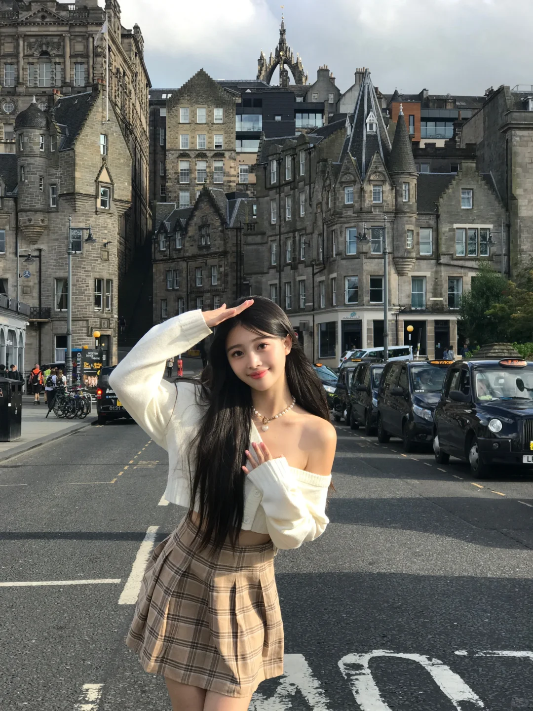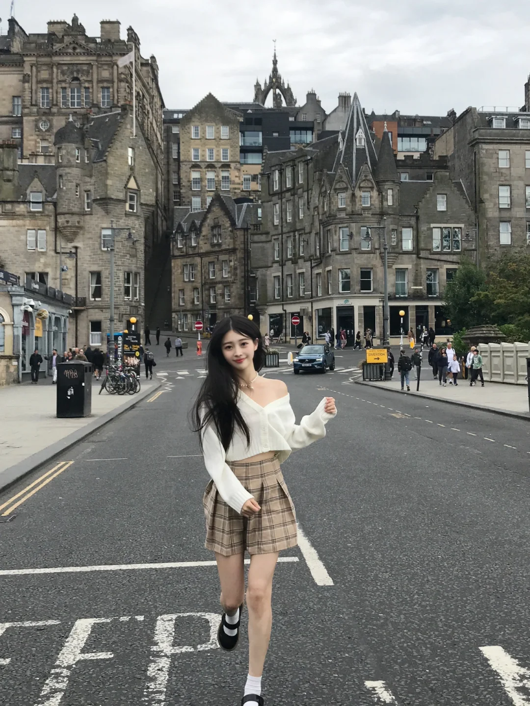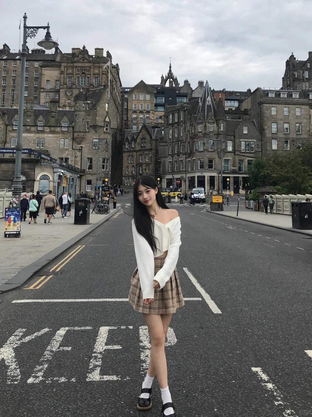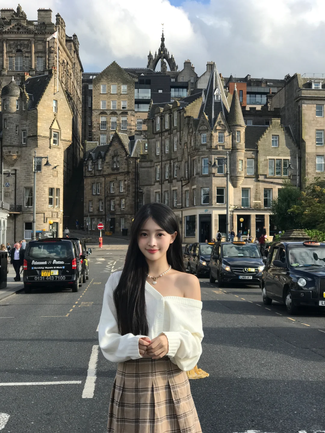来爱丁堡玩了~ 第一次来苏格兰玩 好喜欢古堡的感觉!! 特意搭配了适合苏格兰的百褶裙🏴 今天是温柔学姐小温🤍