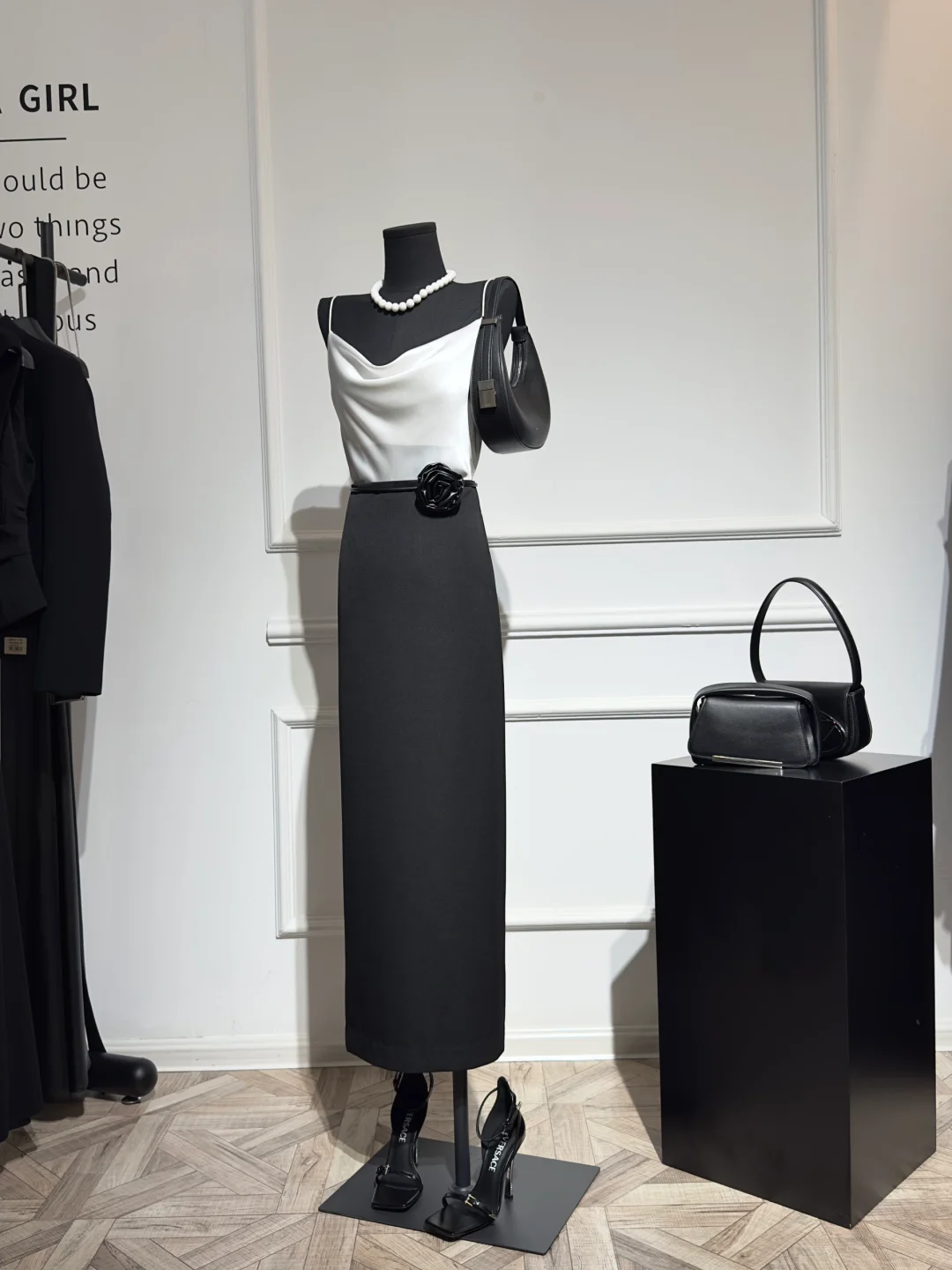 黑色皮质连体裙勾勒利落线条,过膝皮靴踩出酷飒气场,简约背景里尽显冷艳魅力。高级