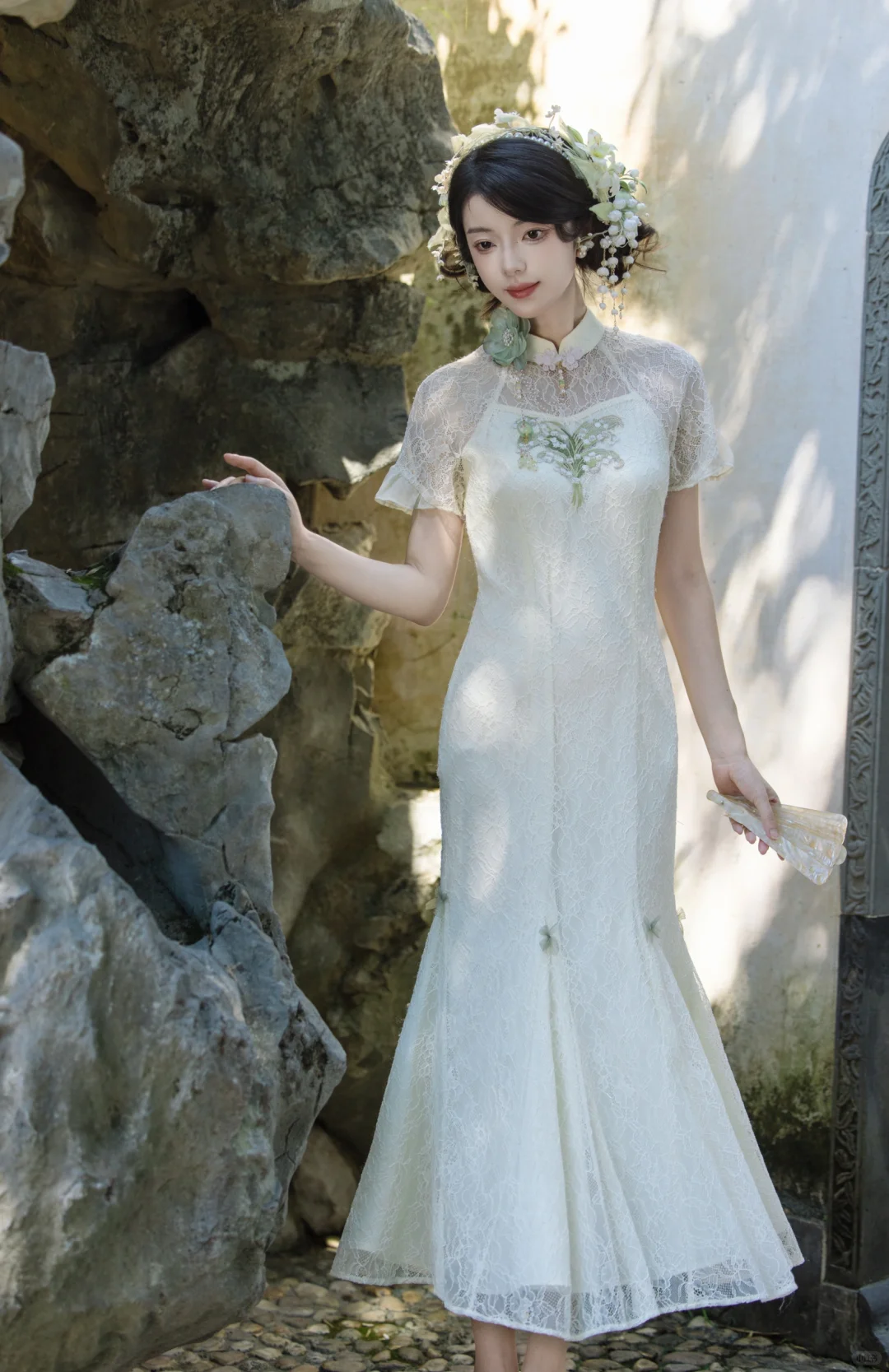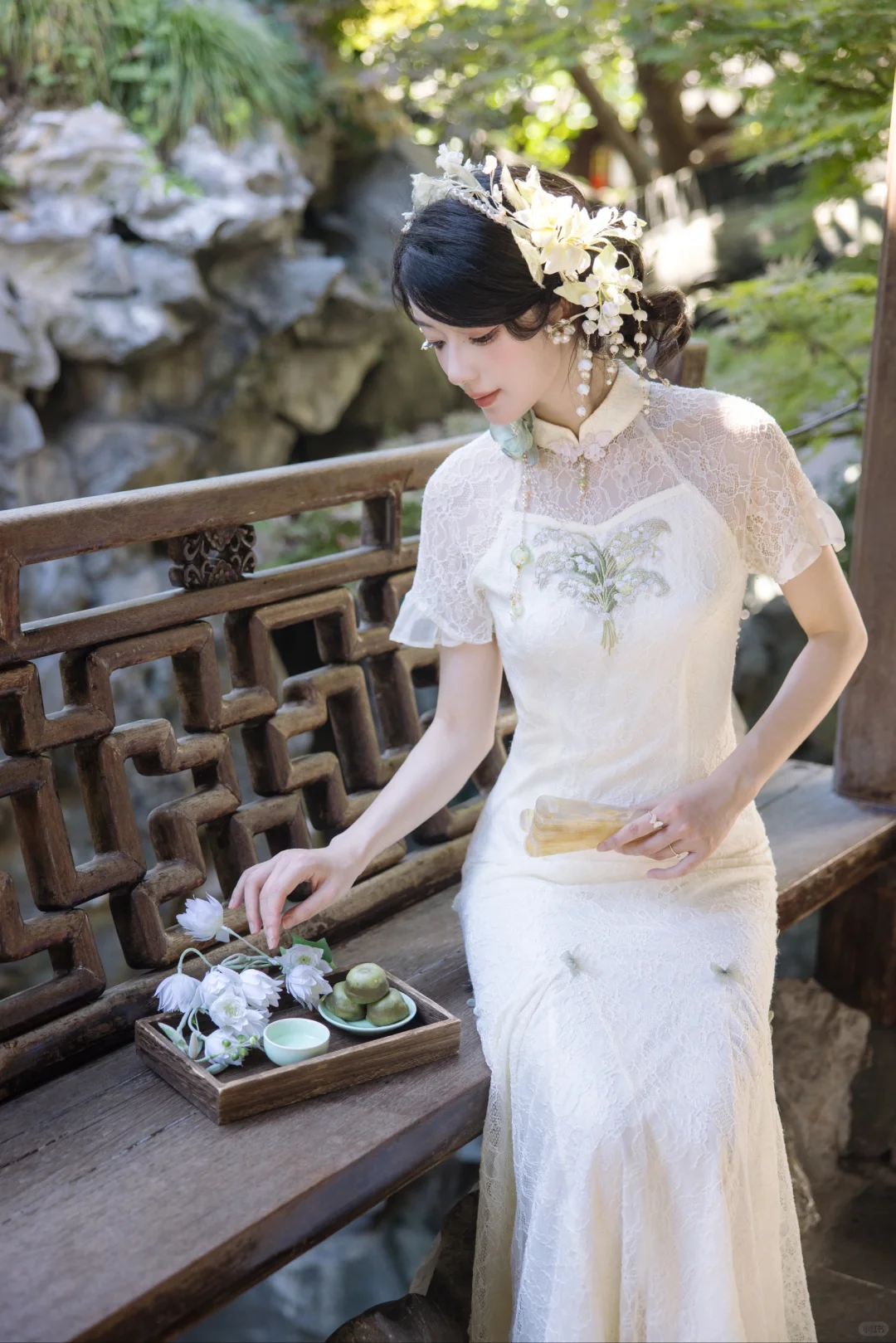好喜欢鱼尾旗袍裙所带来的优雅感!