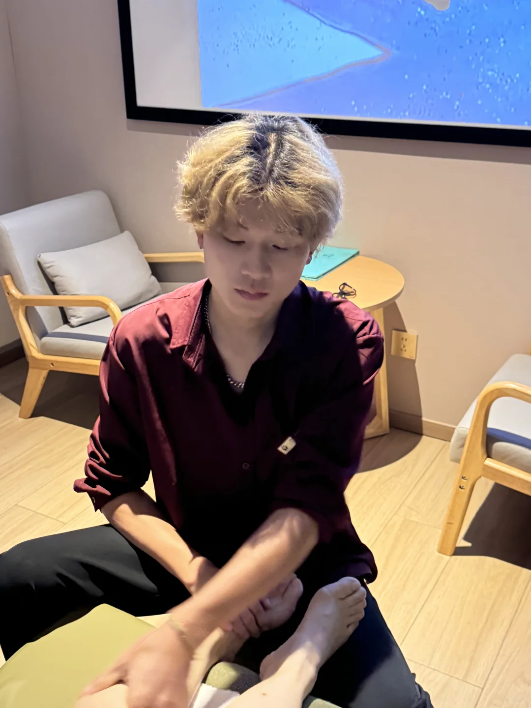 哎,听说别人家的按摩地儿,按完还能吃自助大餐,我这心啊,像是被牛排插了两刀,酸得不行不行的~